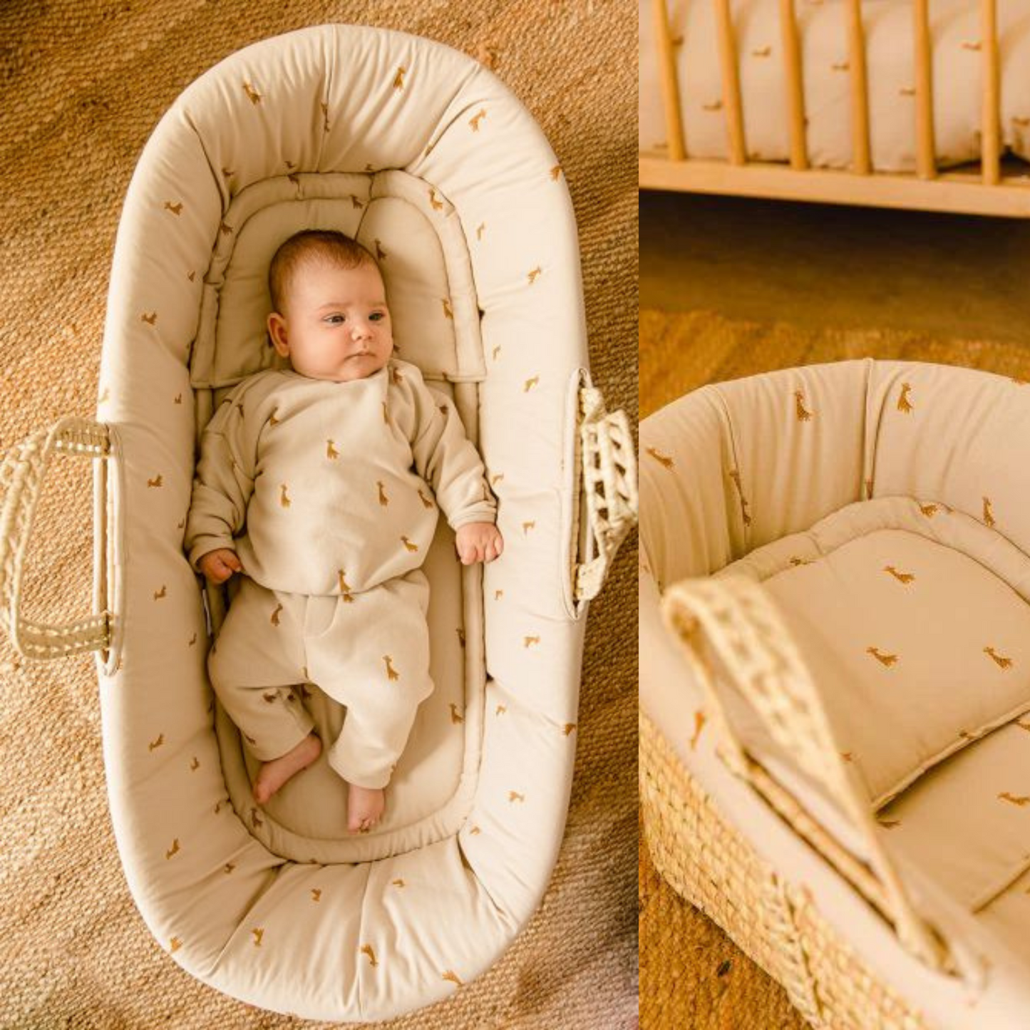El Moisés de Ratán gloop! es una pieza práctica, ligera y cómoda diseñada para el descanso de tu bebé. Hecho a mano con atención al detalle, este nido incluye un colchón, colcha y almohada para asegurar la máxima comodidad. El exterior está confeccionado con nuestro tejido 100% algodón orgánico certificado, mientras que el interior del colchón y la colcha están compuestos de poliéster. Fabricado en Portugal, garantiza calidad y seguridad para tu pequeño.
