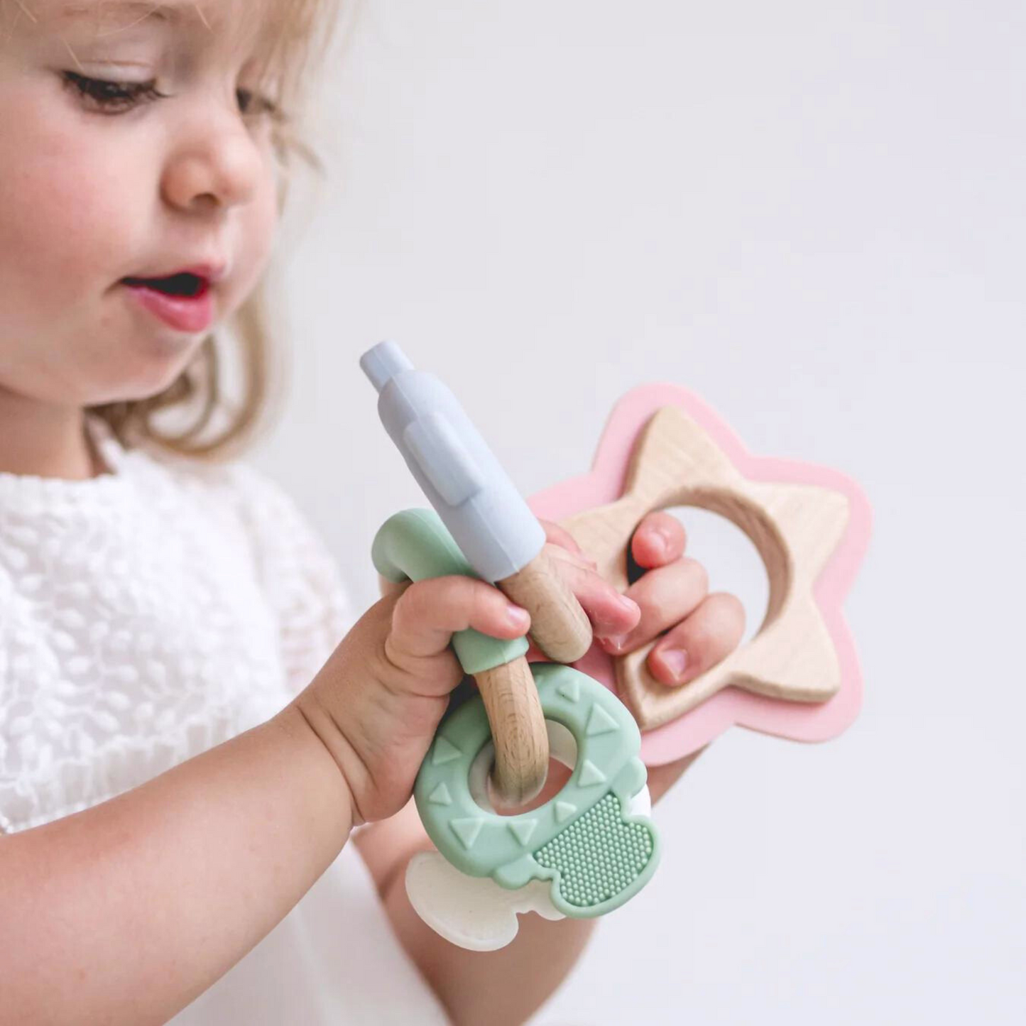 - Estimulación sensorial: Con texturas naturales y bordes suaves que incentivan el desarrollo sensorial y proporcionan alivio durante la dentición.