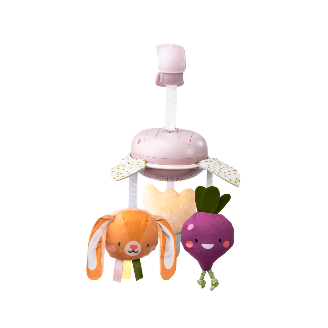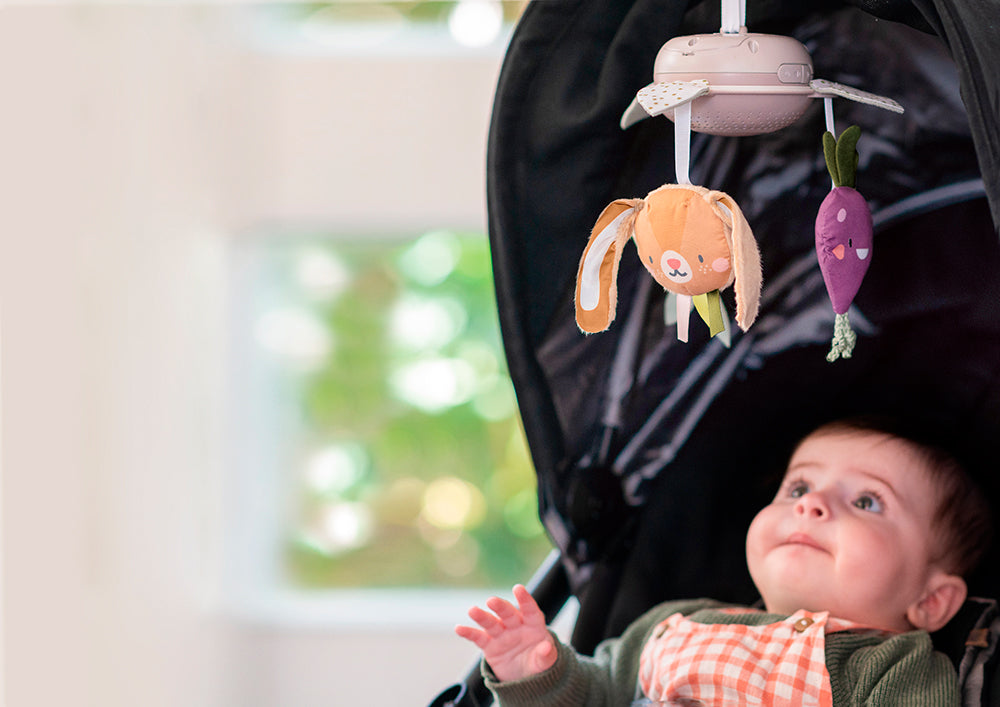 Activity mobile for baby's fun and development on the go. Baby develops senses and motor skills by playing with the soft hanging figures.