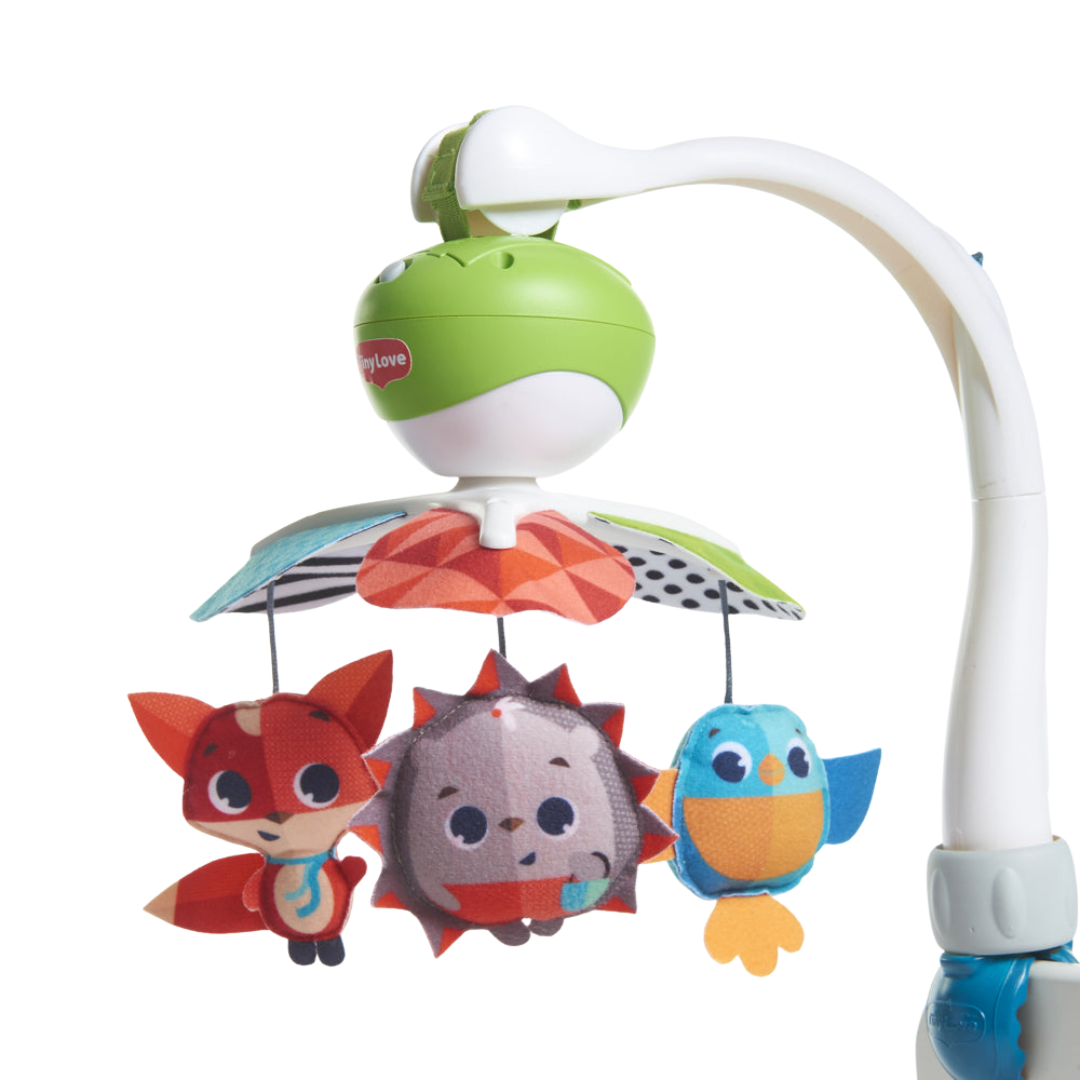 Adorable toy that gives your baby a sense of normality when they are away from home. Its calming melodies and slow movement help to relax your baby and encourage the development of their emotional intelligence.
