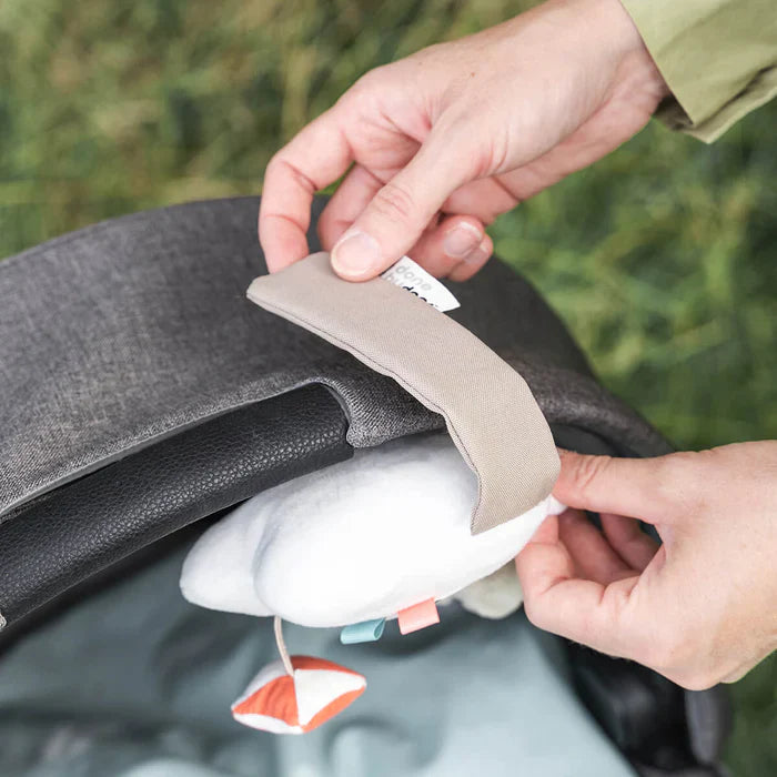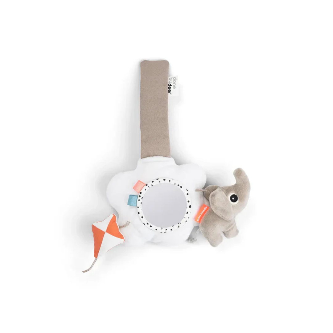 Haz de cada paseo una experiencia sensorial con este encantador móvil para coche de Done by Deer. Diseñado con colores suaves y personajes adorables como Elphee, un volantín y un espejo que invita a jugar con los reflejos, este móvil despierta la curiosidad y entretiene a tu bebé mientras explora el mundo desde su coche.