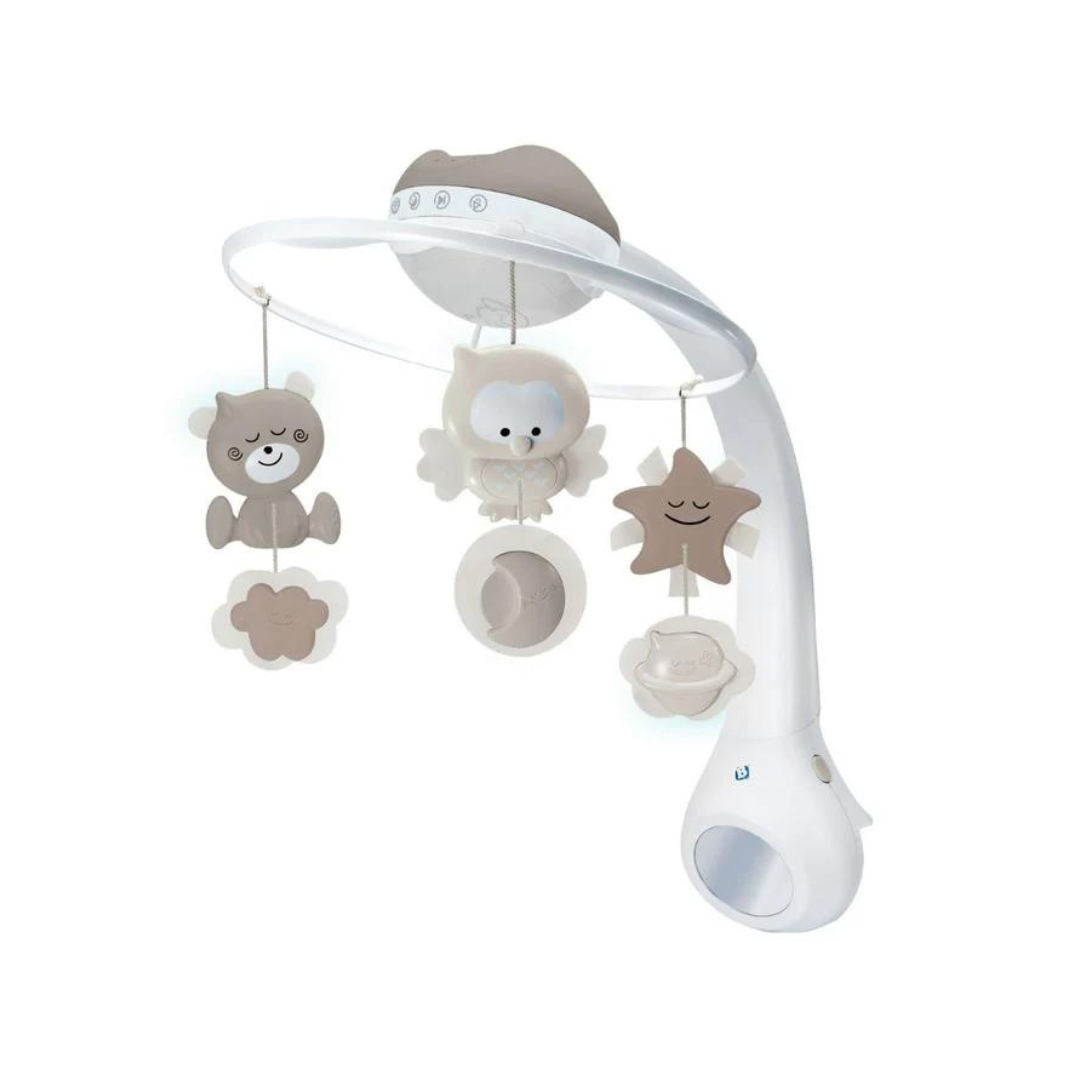 Projection of Luminous Figures: This device projects multicolored luminous figures that stimulate the baby's sight, promoting visual development in an entertaining and educational way.