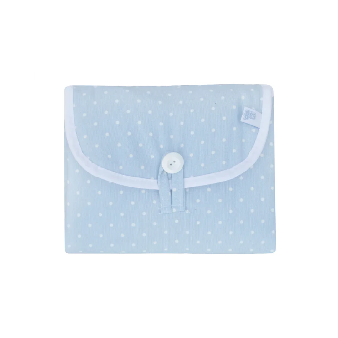 Cute and practical changing mat to change your baby anywhere. It folds easily with one hand, making it small and practical to put in your purse or baby bag. It has a pocket inside for diapers and wet wipes. The fabric on the back is waterproof so it is resistant to water and dirt and it has a foam interior to give your baby a soft and comfortable base.