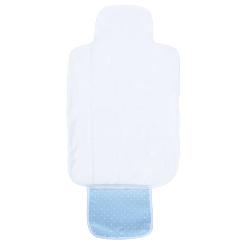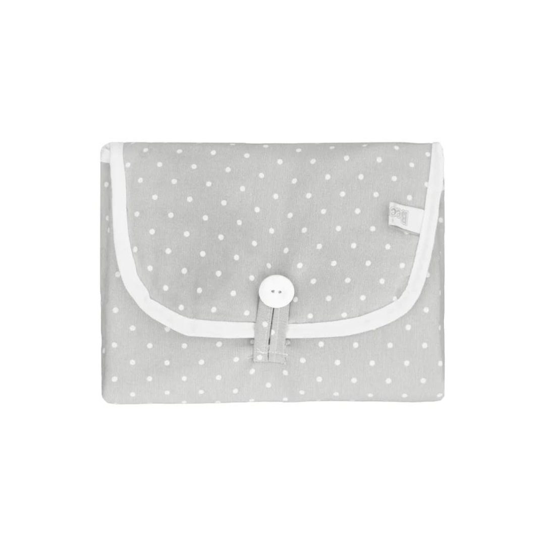 Cute and practical changing mat to change your baby anywhere. It folds easily with one hand, making it small and practical to put in your purse or baby bag. It has a pocket inside for diapers and wet wipes. The fabric on the back is waterproof so it is resistant to water and dirt and it has a foam interior to give your baby a soft and comfortable base.