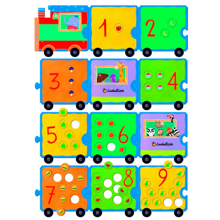 Este encantador tren de fichas encajables es el compañero ideal para introducir a los niños en el mundo de los números y las cantidades. Cada vagón representa un número del 1 al 9, con un diseño táctil que permite explorar las cifras a través del sentido del tacto. Además, los elementos de cantidad son desmontables, lo que refuerza la comprensión del valor numérico mediante el juego interactivo.