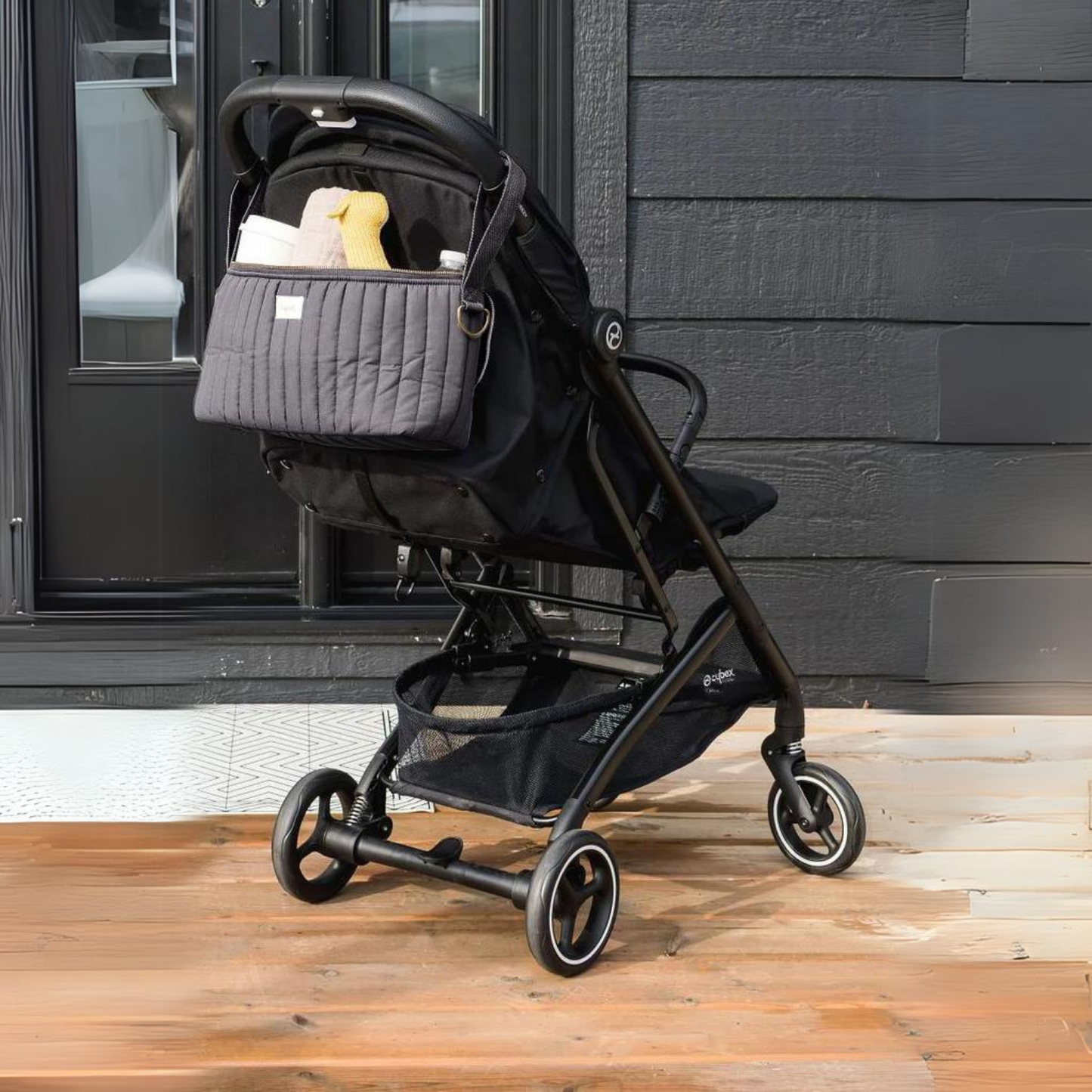 Keep all your essentials within reach with this handy padded stroller organizer. It features 6 interior pockets, providing ample storage space for small items. It can be zipped shut for added privacy and security. Its universal fit with Velcro straps attaches securely to stroller handlebars without interfering with stroller folding.