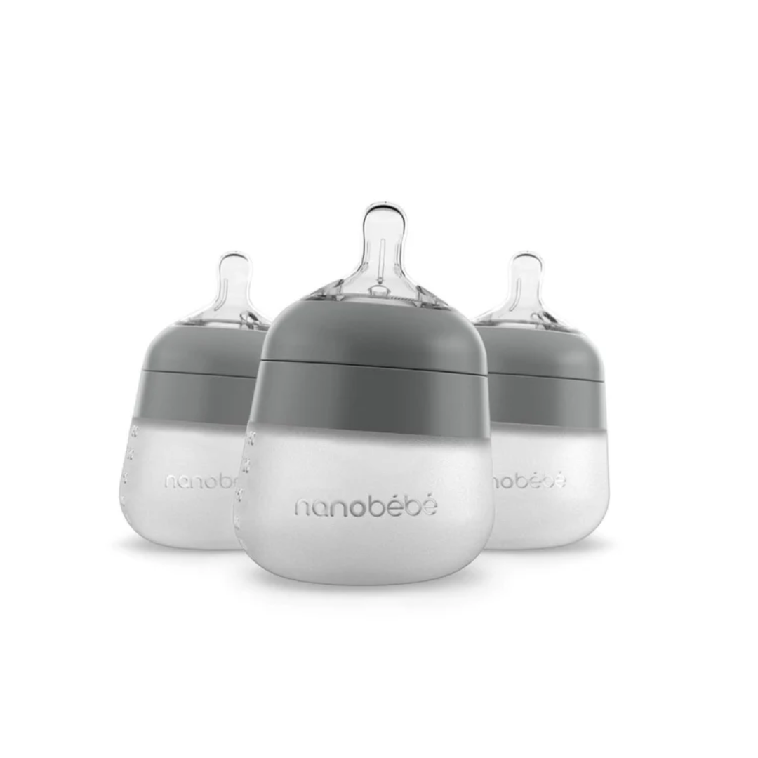 Pack of 3 150 ml Silicone Bottles - Grey from Nanobébé: Smooth and Natural Transition for your Baby