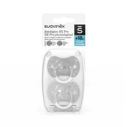 The set of two Suavinex SX Pro Physiological Pacifiers is the ideal option to ensure that your baby has a comfortable and natural experience. Designed to respect oral development and provide a pleasant sensation, these pacifiers are a safe and comfortable choice for your little one.