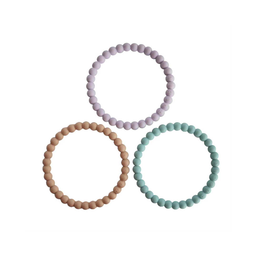 Pack of 3 Silicone Teething Bracelets - Pearl - Lilac
