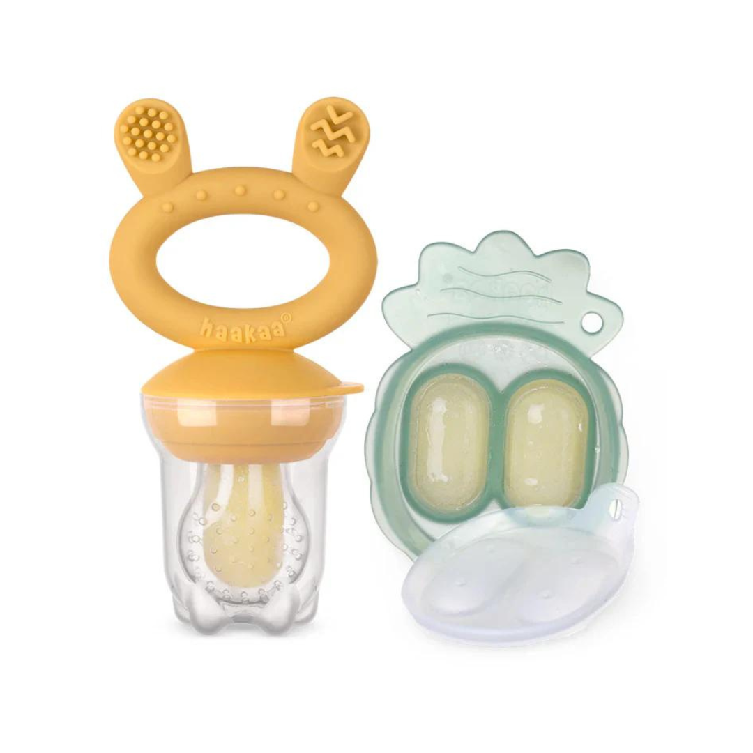 Discover the Haakaa Freeze-N-Feed Teether, the perfect solution for safely introducing new flavours to your baby whilst soothing their teething gums. This clever set combines our popular teether pouch with a mini silicone pineapple-shaped ice cube tray, ideal for creating perfect frozen portions that fit into the teether pouch.