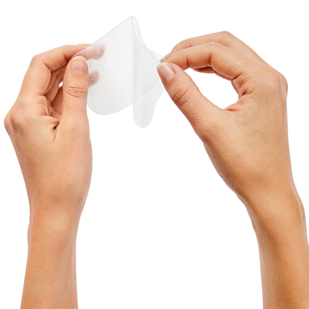 Optional: To enhance the smoothing effect, briefly run the gel side of the patch under cold water (1 - 2 seconds), shake off excess water and let sit for 2 minutes. Only use each patch for 24 hours, then it is important to throw it away.