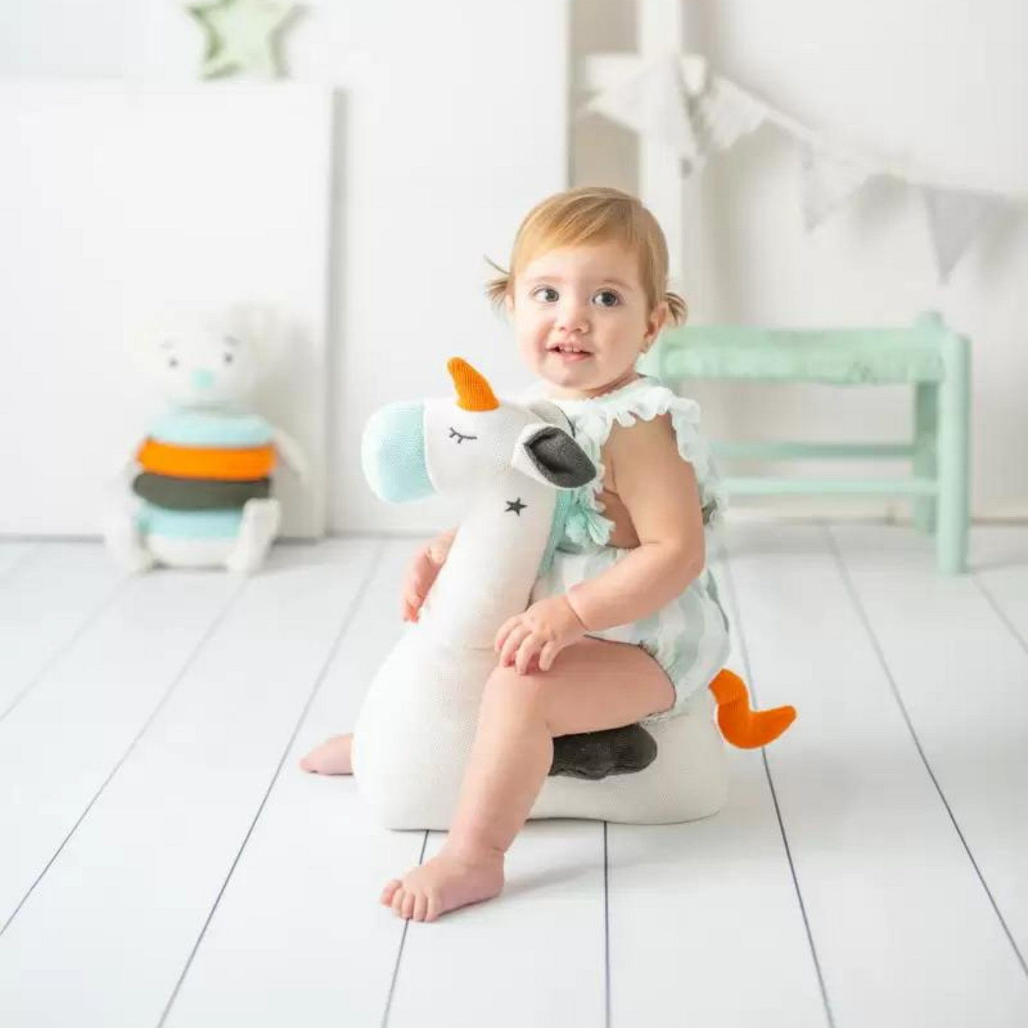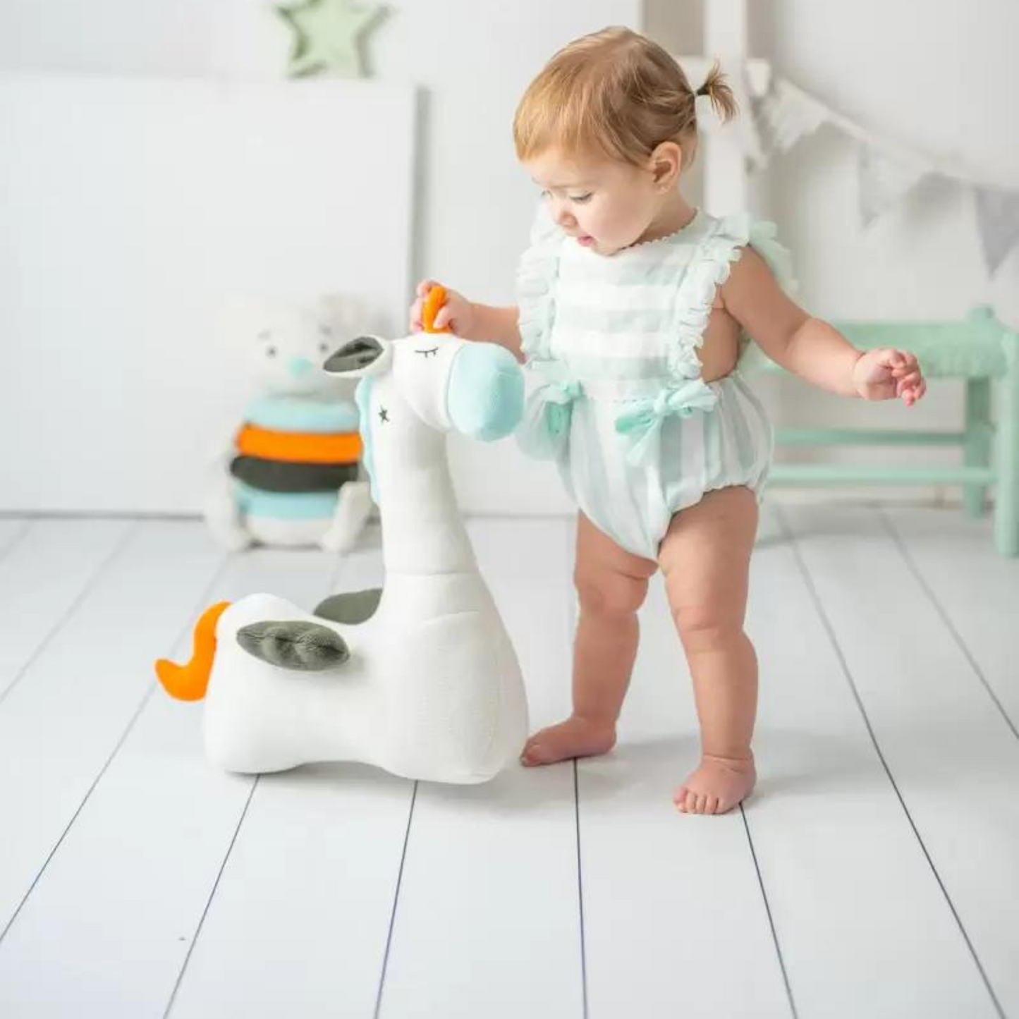 El Pegaso Mini cumple con estrictos controles de calidad y normativas de seguridad europeas (EN71), asegurando que es seguro para los niños. Los modelos grandes de esta colección incluso cuentan con una estructura interior de madera que soporta hasta 70 kg.
