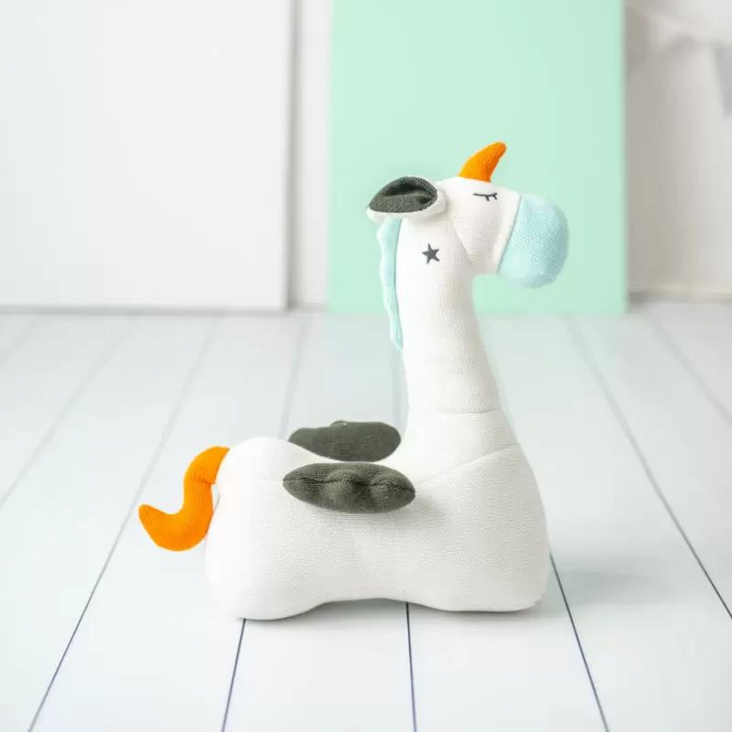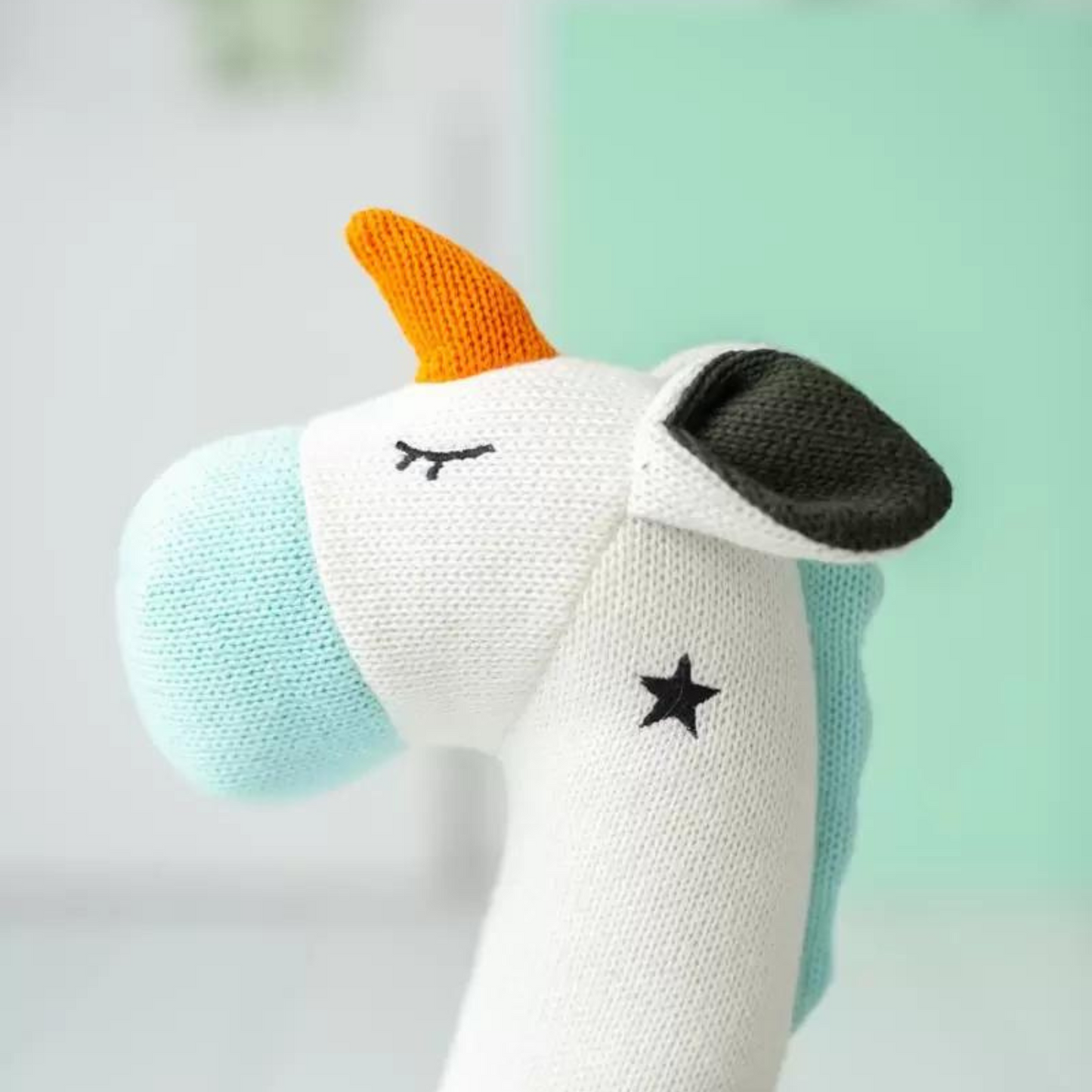 El Pegaso Mini de Crochet de la marca Crochetts está confeccionado con algodón natural 100%, hipoalergénico y muy suave al tacto, en colores blanco, azul y negro. Cada detalle, como su bordado y sus colores, ha sido cuidadosamente trabajado para darle un toque especial. Este adorable amigurumi es un compañero perfecto para los niños o un elegante elemento decorativo en habitaciones infantiles.