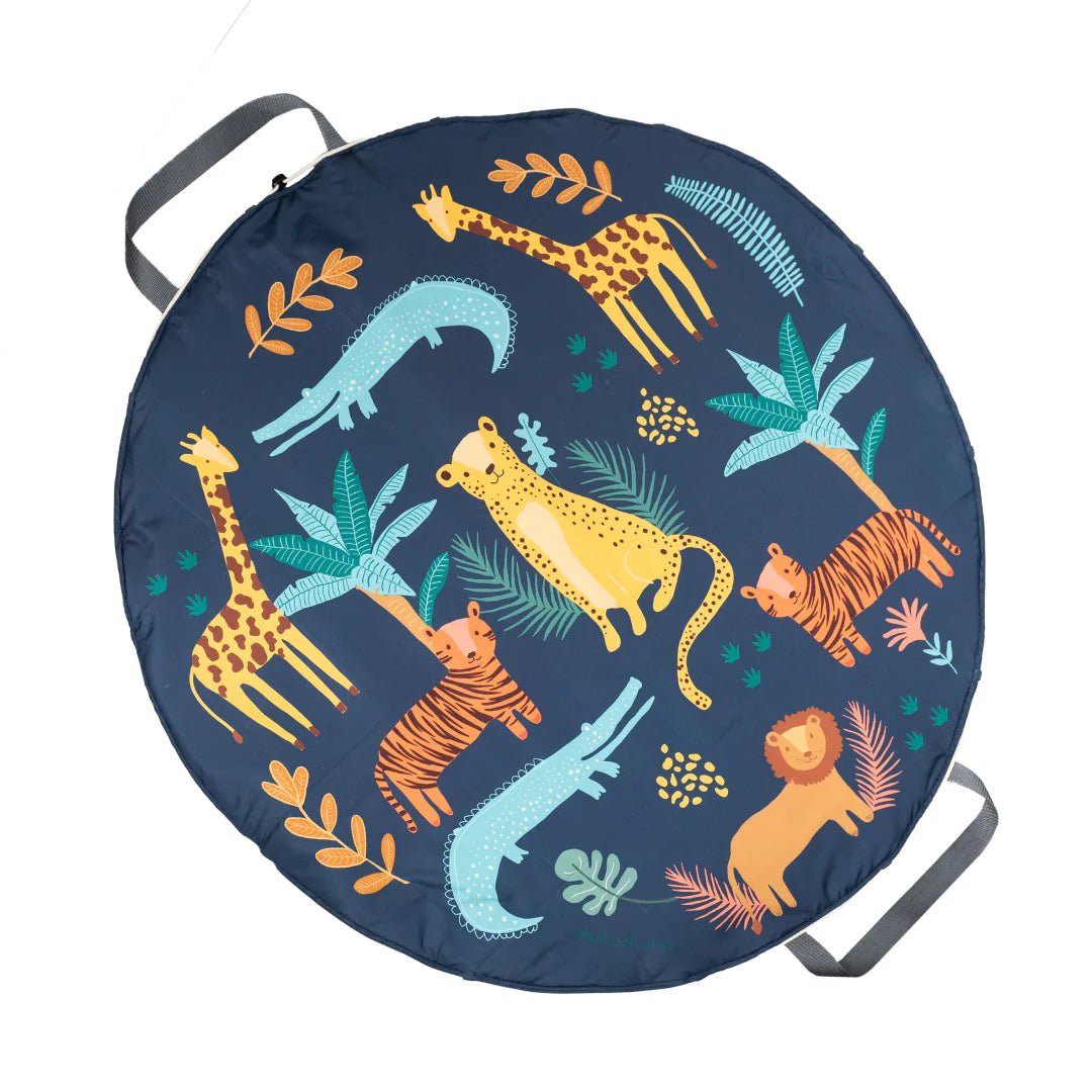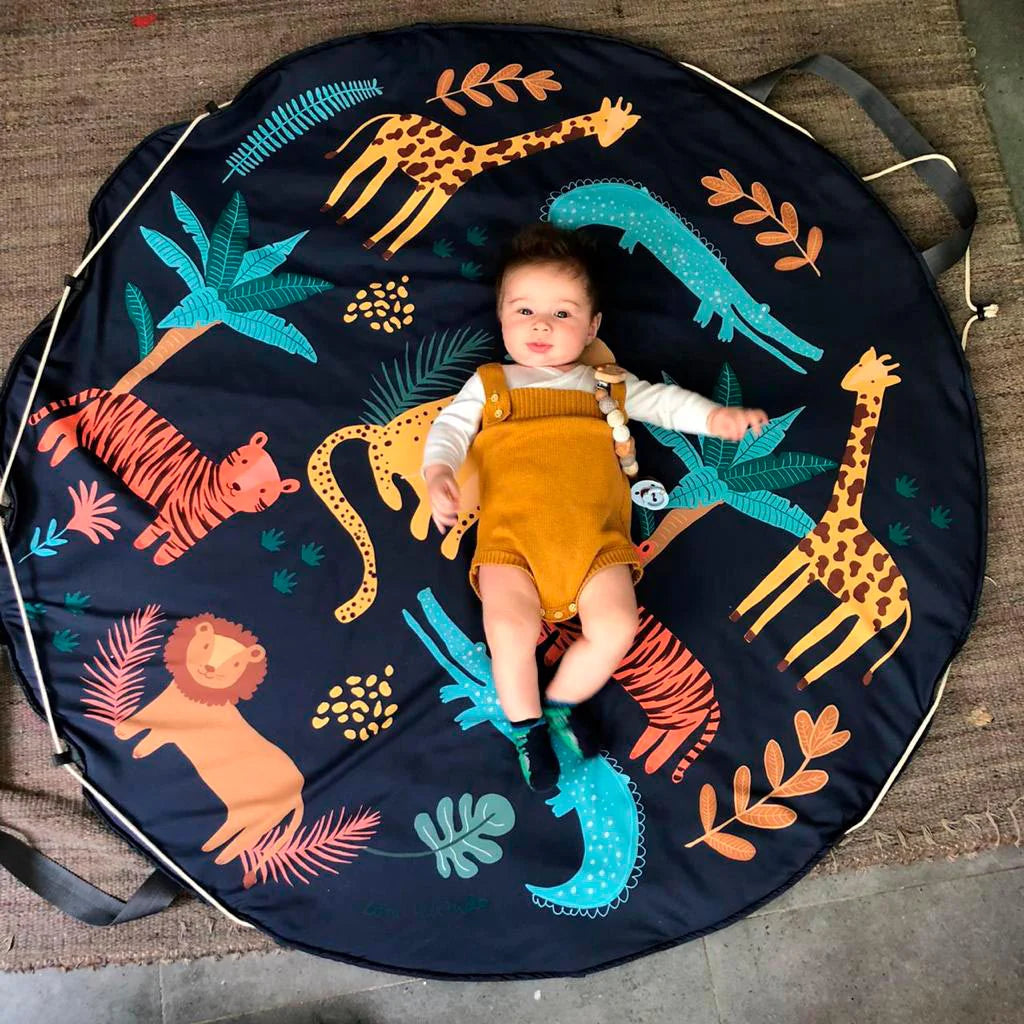 These playmats are padded, soft and easy to carry. They turn into a bag to carry toys everywhere. They are waterproof and ideal for taking to the park as the moisture from the grass does not penetrate through.