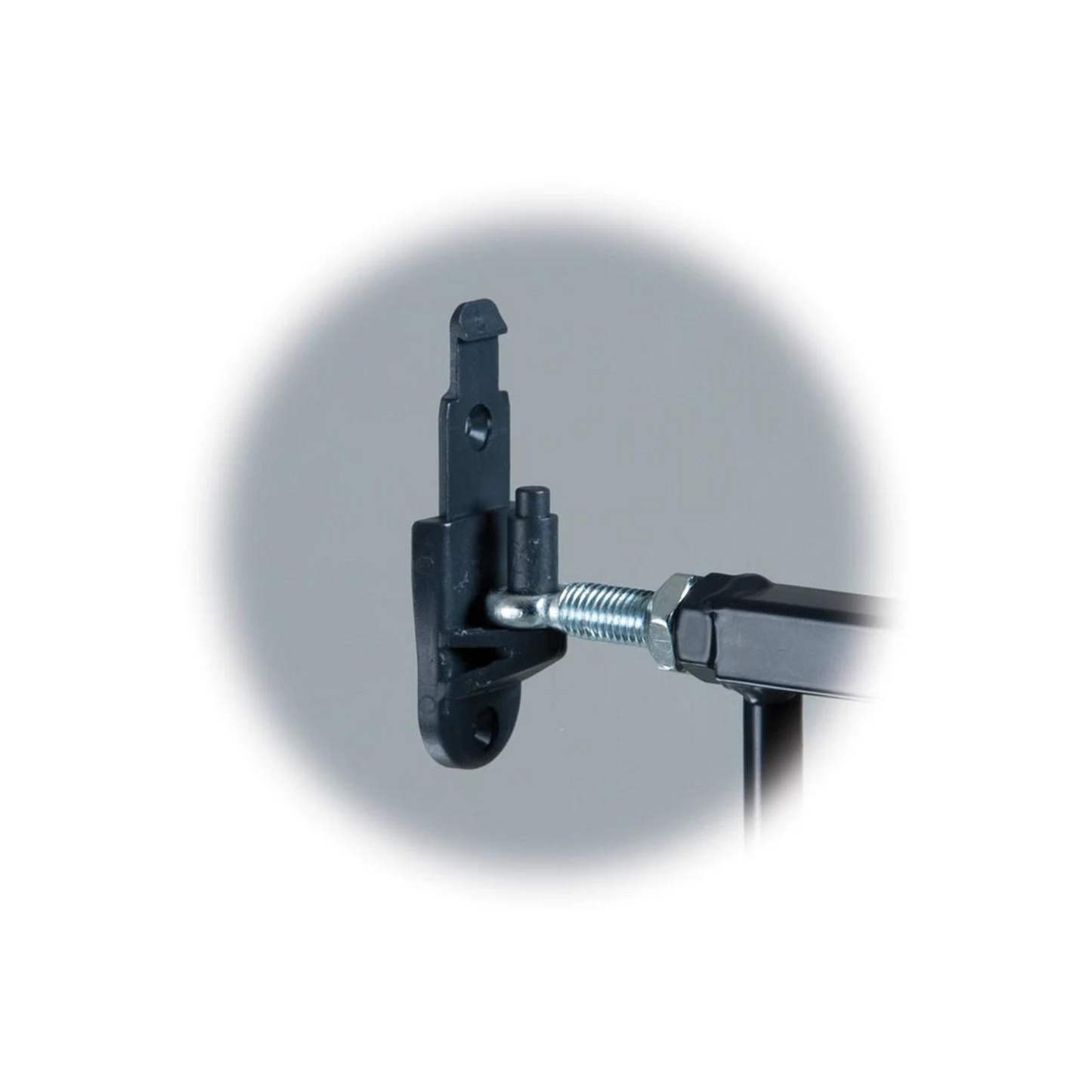 Su sistema de apertura unidireccional está diseñado para evitar aperturas accidentales en dirección a la escalera, añadiendo una capa extra de seguridad. Además, la baranda necesita ser montada y perforada a la pared, lo que asegura máxima estabilidad y protección.