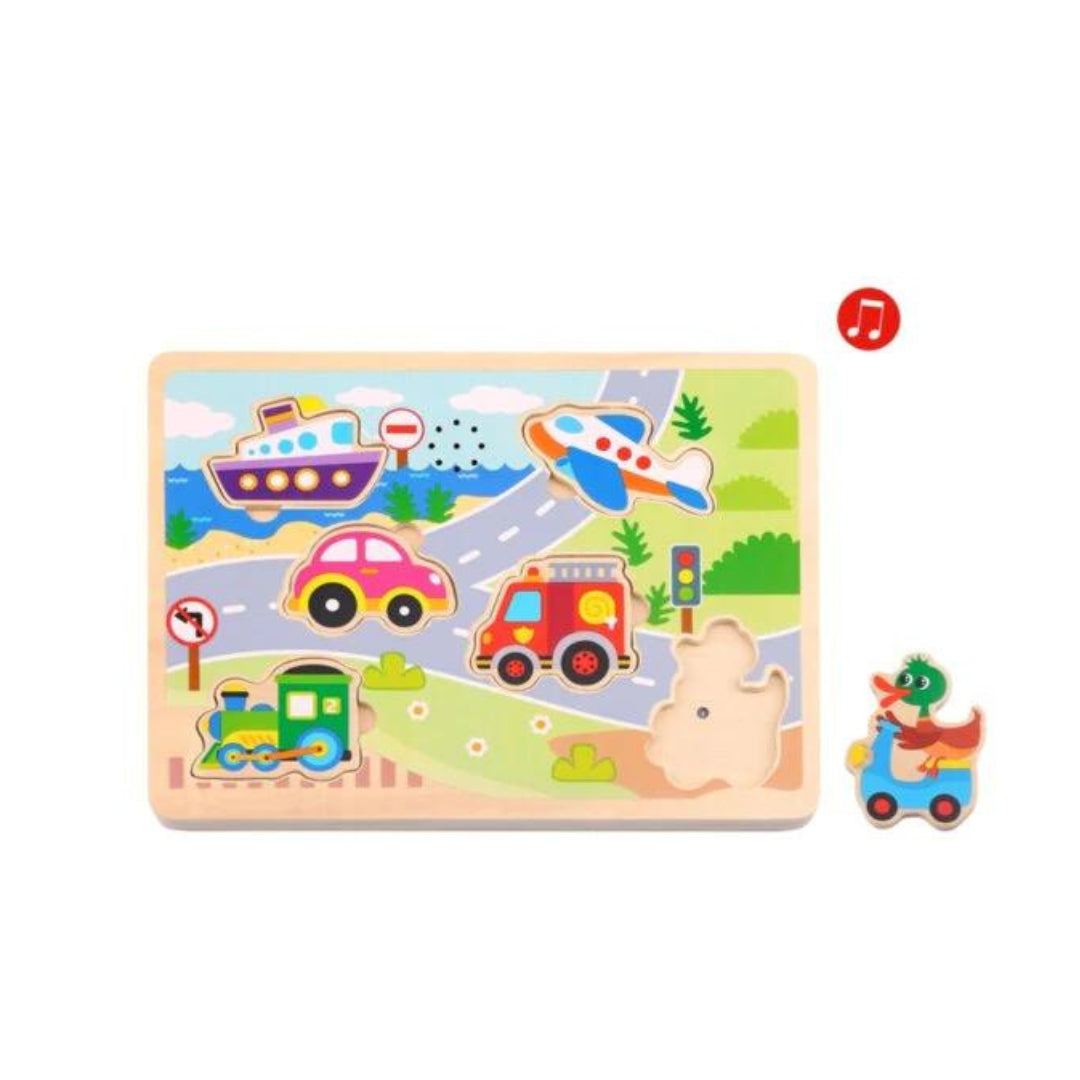 Discover the World of Transport with the Wooden Sound Puzzle – Auditory Adventures for Little Explorers