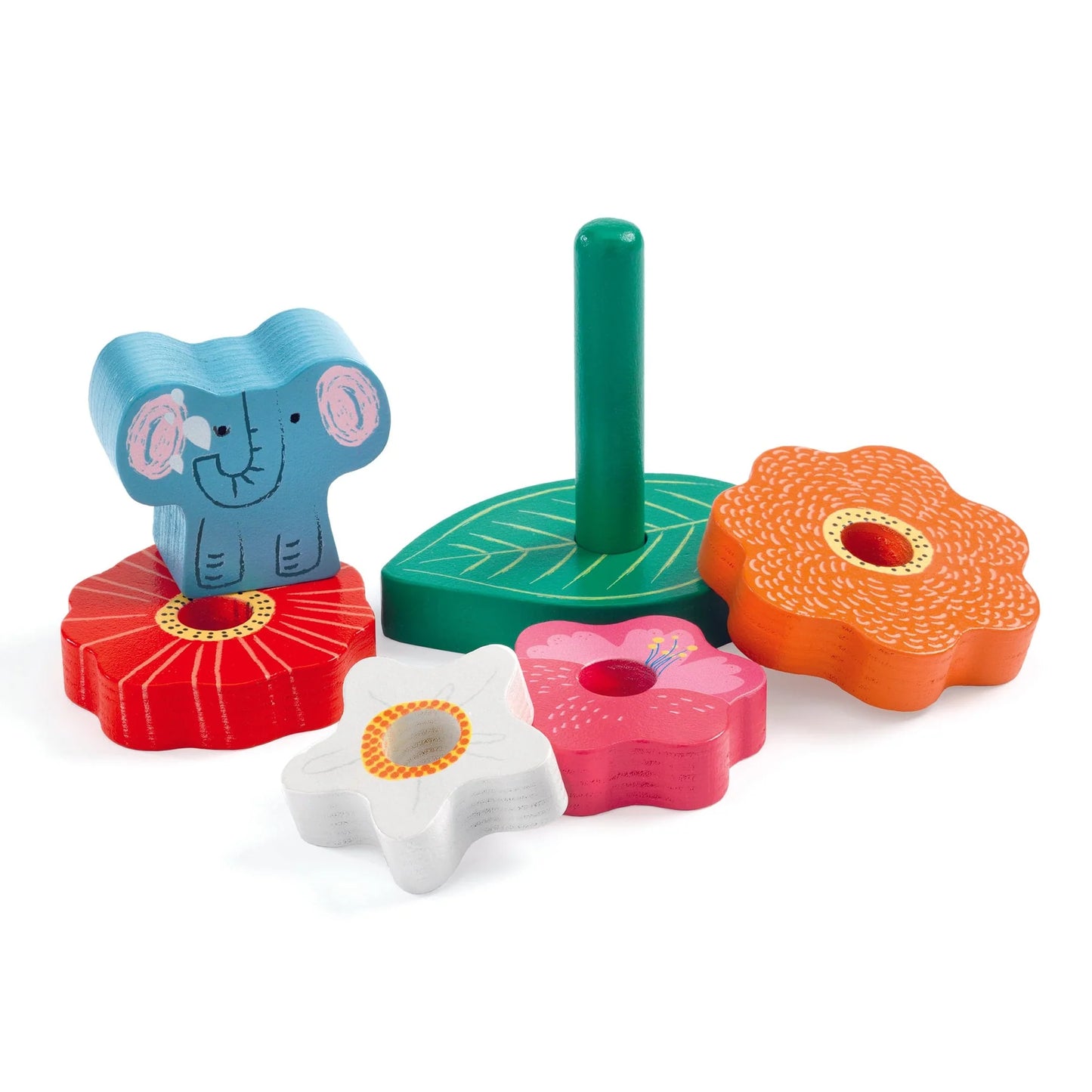 El Puzz Stack Happy de Djeco combina lo mejor del encaje y el apilamiento en un solo juguete encantador. Este colorido puzzle de madera en relieve permite a los pequeños formar una piramidal floral, coronada por un simpático elefante, mientras desarrollan habilidades motoras, coordinación y lógica.