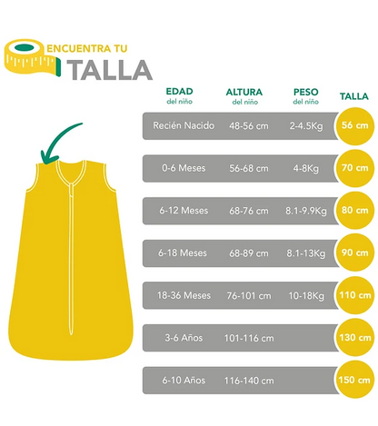 Este saquito de dormir no solo ofrece la máxima comodidad, sino también la tranquilidad de saber que tu bebé está protegido con materiales de alta calidad y libre de sustancias dañinas.