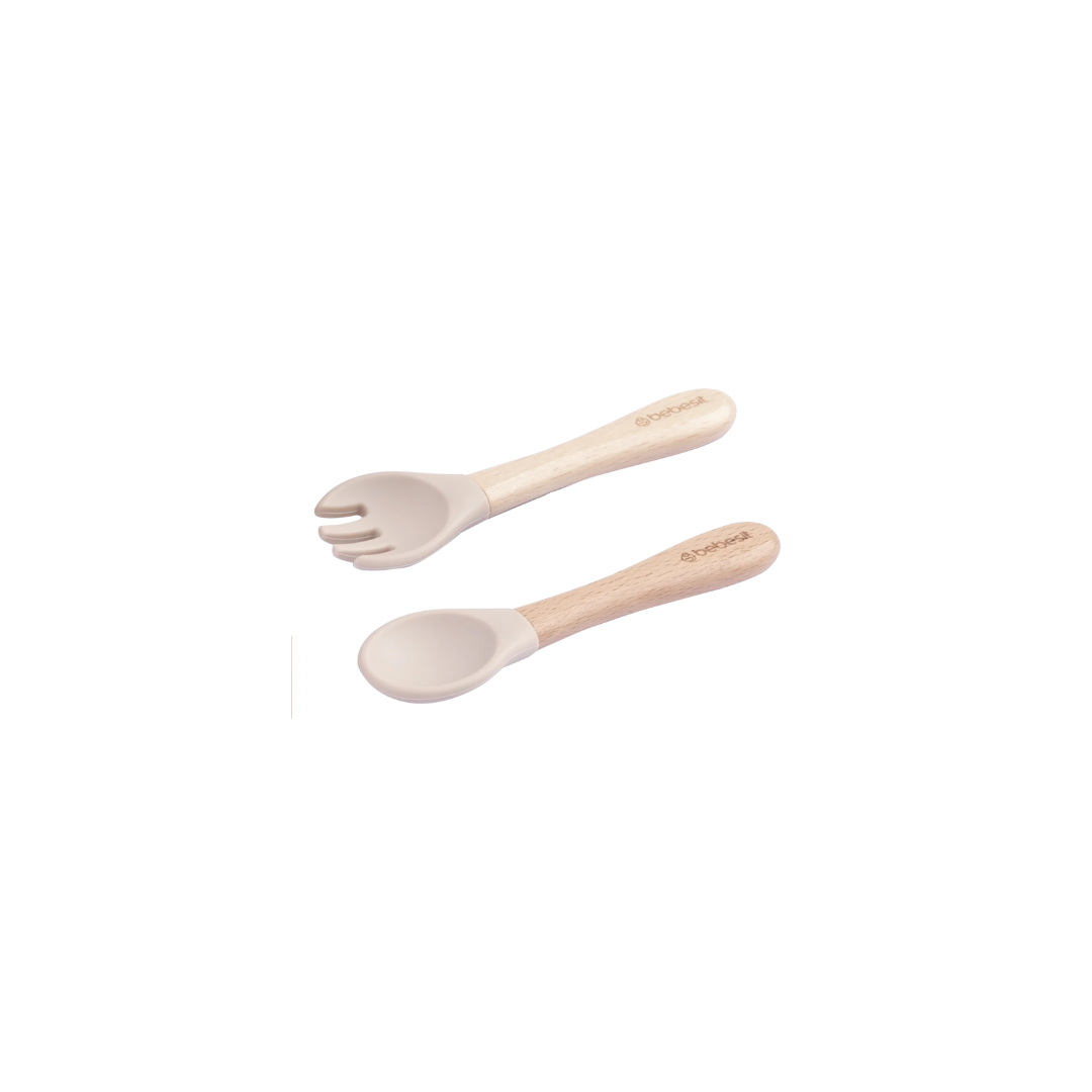 - Cuchara y tenedor de silicona con agarre fácil y seguro