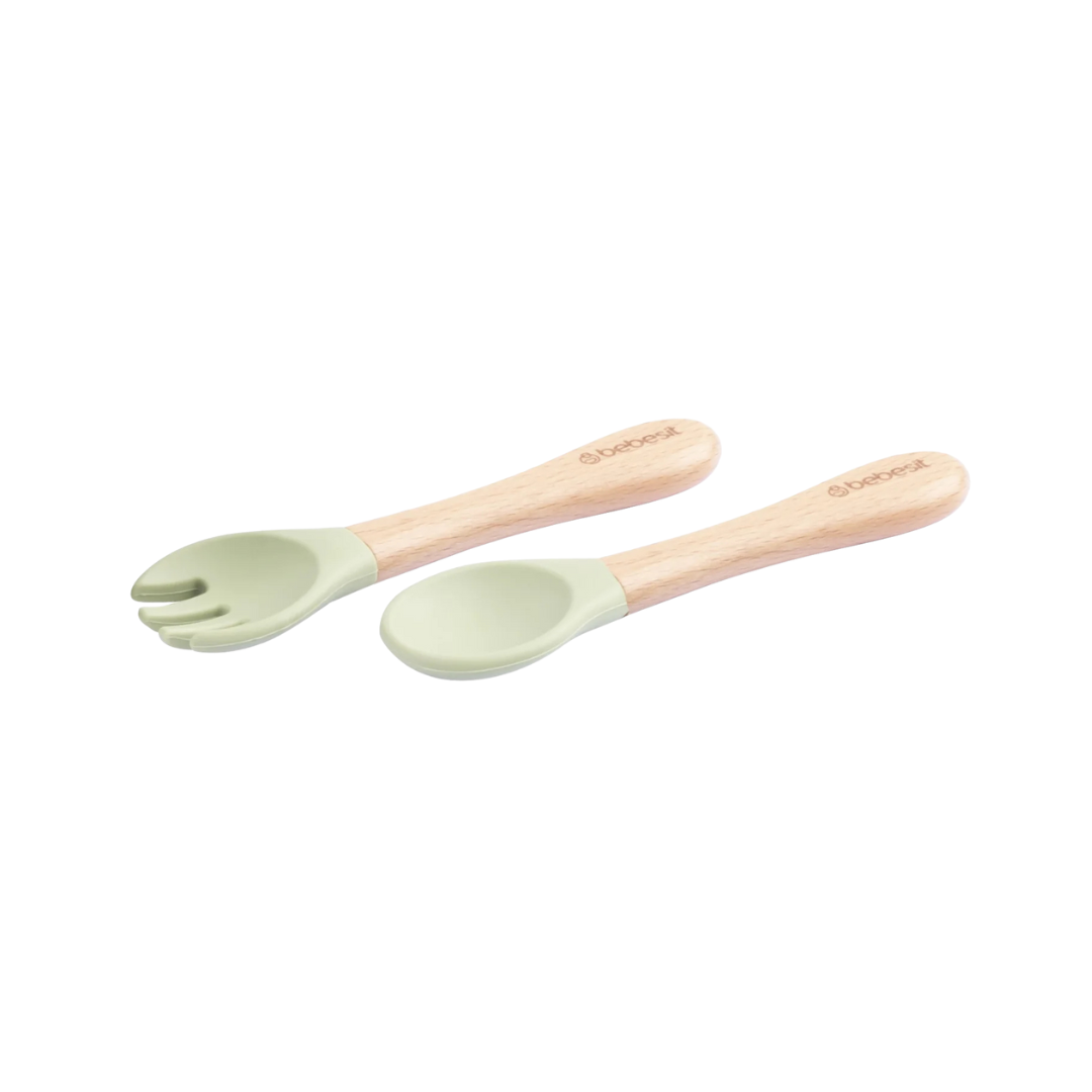 - Cuchara y tenedor de silicona con agarre fácil y suave, perfectos para manos pequeñas.