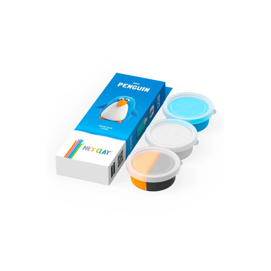 Set de 3 Potes de Arcilla para Modelar: Aves - Pingüino
