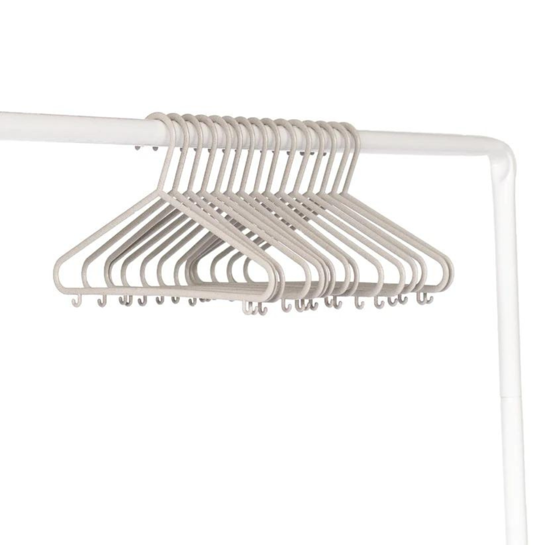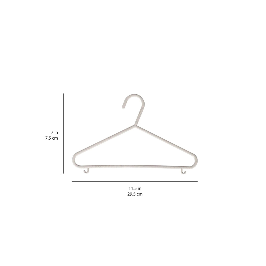 These hangers are perfectly sized for your baby's small clothes. Made from eco-friendly wheat straw material, they offer a sustainable and functional storage solution. Each hanger includes 2 hooks for hanging suspenders and accessories, making them ideal for organizing all types of children's clothing.