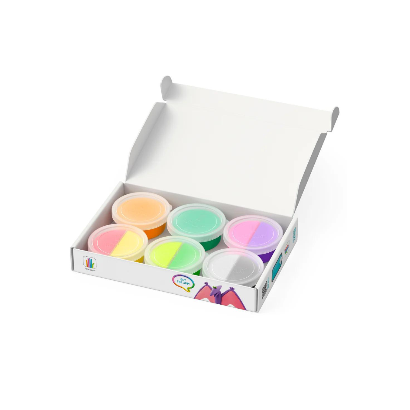 - 6 potes de arcilla en 7 a 9 colores vibrantes.