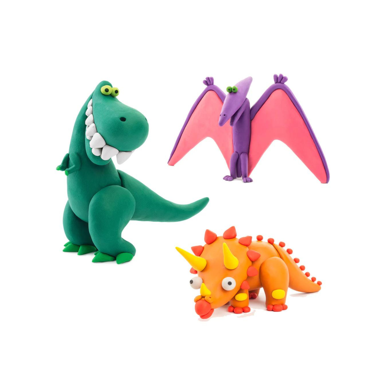 Set de 6 Potes de Arcilla para Modelar: Dinosaurios - Tiranosaurio, Pterodáctilo, Triceratops
