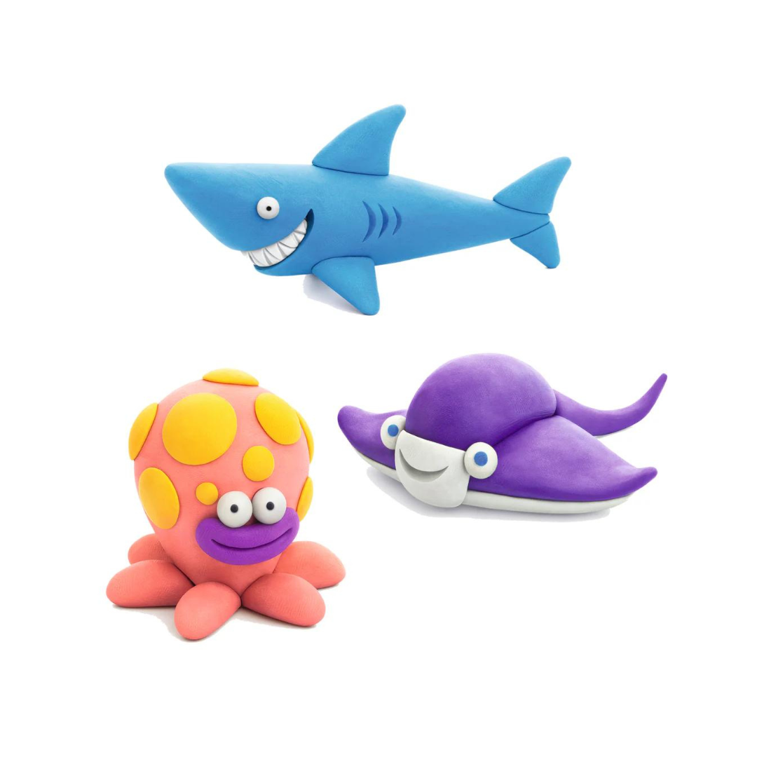 Set de 6 Potes de Arcilla para Modelar: Oceano - Tiburón, Mantaraya, Pulpo