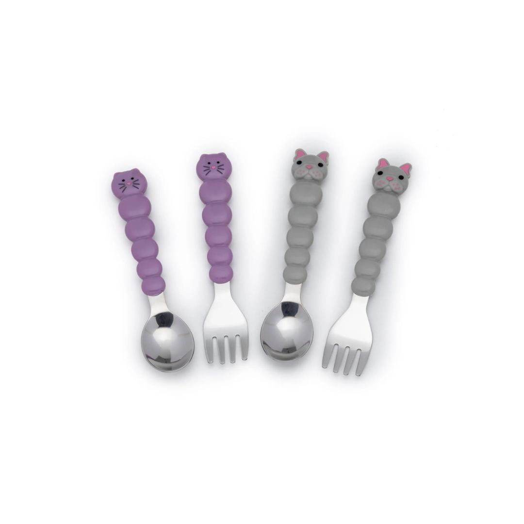 Cutlery Set - 4 pieces - Bulldog and Cat