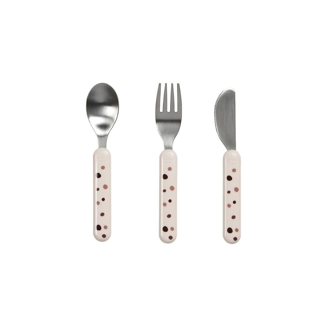 Este encantador set de cubiertos de Done By Deer, decorado con delicados puntos, es ideal para acompañar a los pequeños en sus primeras comidas de forma cómoda y segura. Diseñado especialmente para las manos pequeñas, cada cubierto tiene el tamaño y la forma adecuados para facilitar el aprendizaje y el disfrute de la hora de comer.