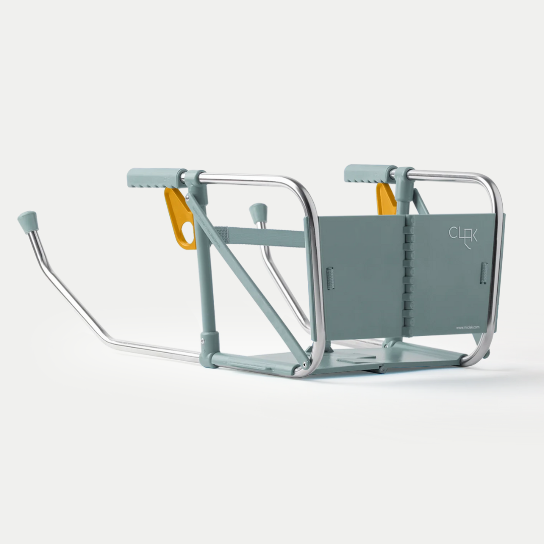 Lightweight, comfortable and foldable, the Clak chair is easy to store and can be taken anywhere. It is very safe as the baby's weight structurally presses the chair against the table at 4 different points. It also has a table clamping system and a safety belt.