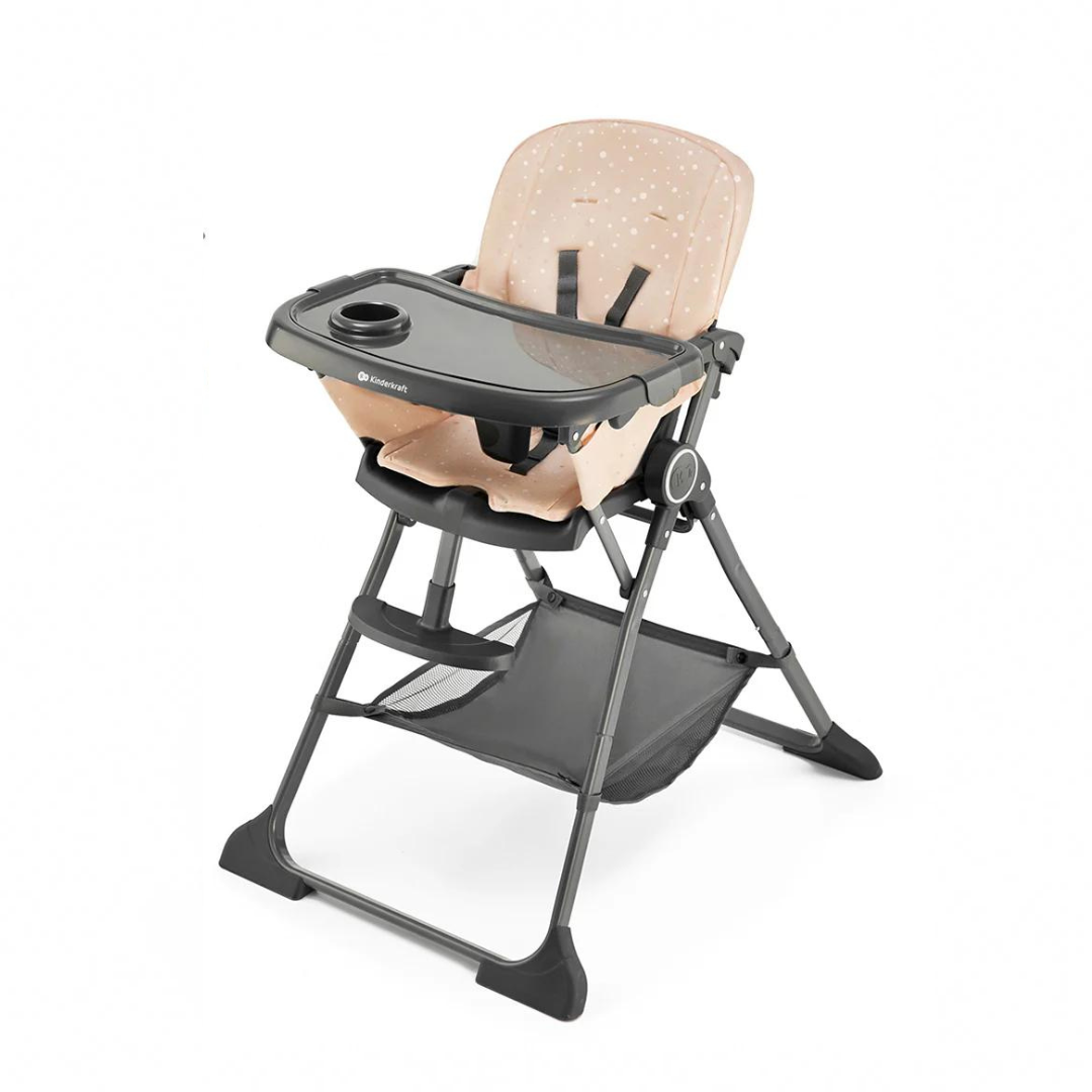• Adjustable and Easy to Clean Tray: FOLDEE features a double tray that can be adjusted to 3 different distances from the seat. It can be removed for washing in the sink and has a cup holder, preventing spills. The tray is approved for direct contact with food.