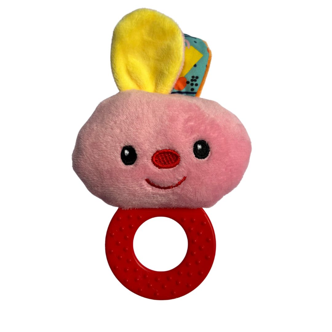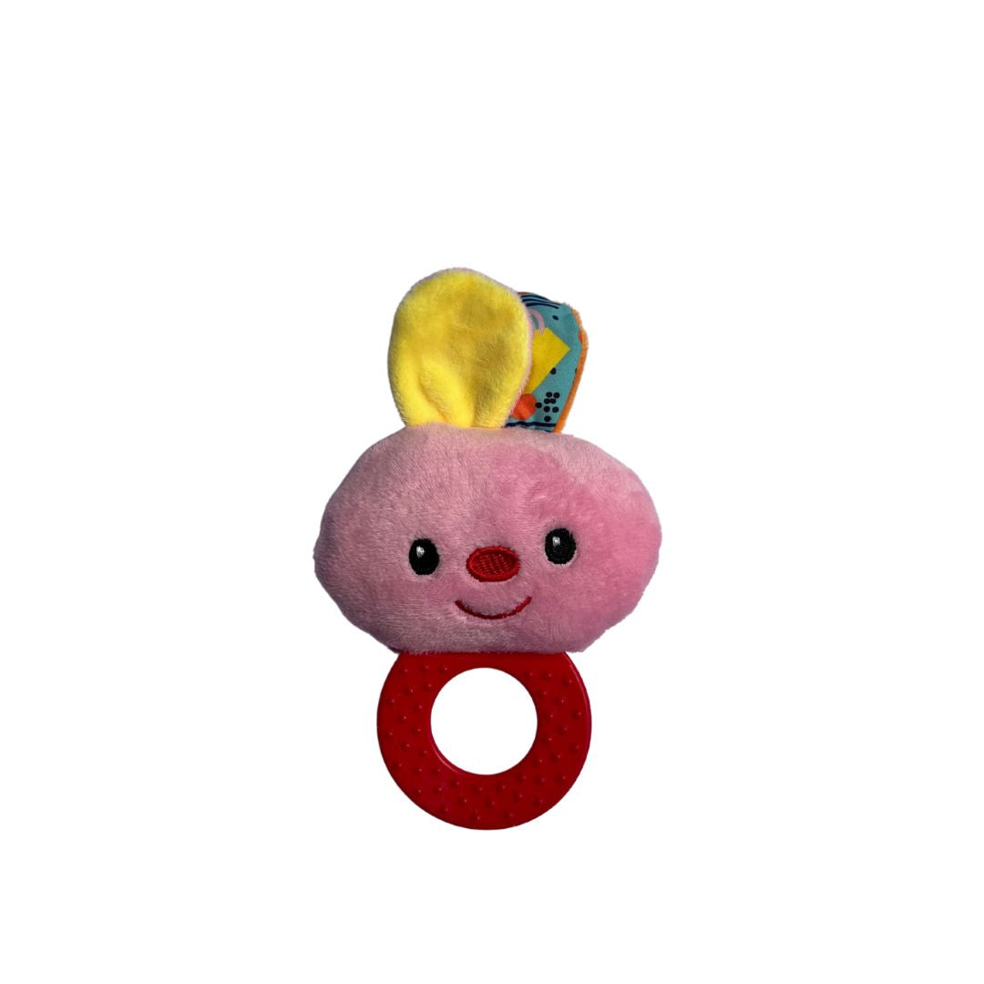 Rattle Plush with Textured Teething Ring, designed to offer fun and sensory stimulation to your baby. Made with soft and safe materials, this small plush not only provides entertainment but also helps soothe gums during the teething process.