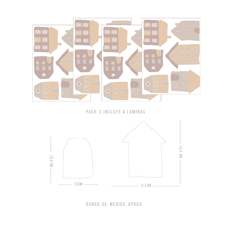 Decorative Wall Stickers - Pink and Yellow Houses