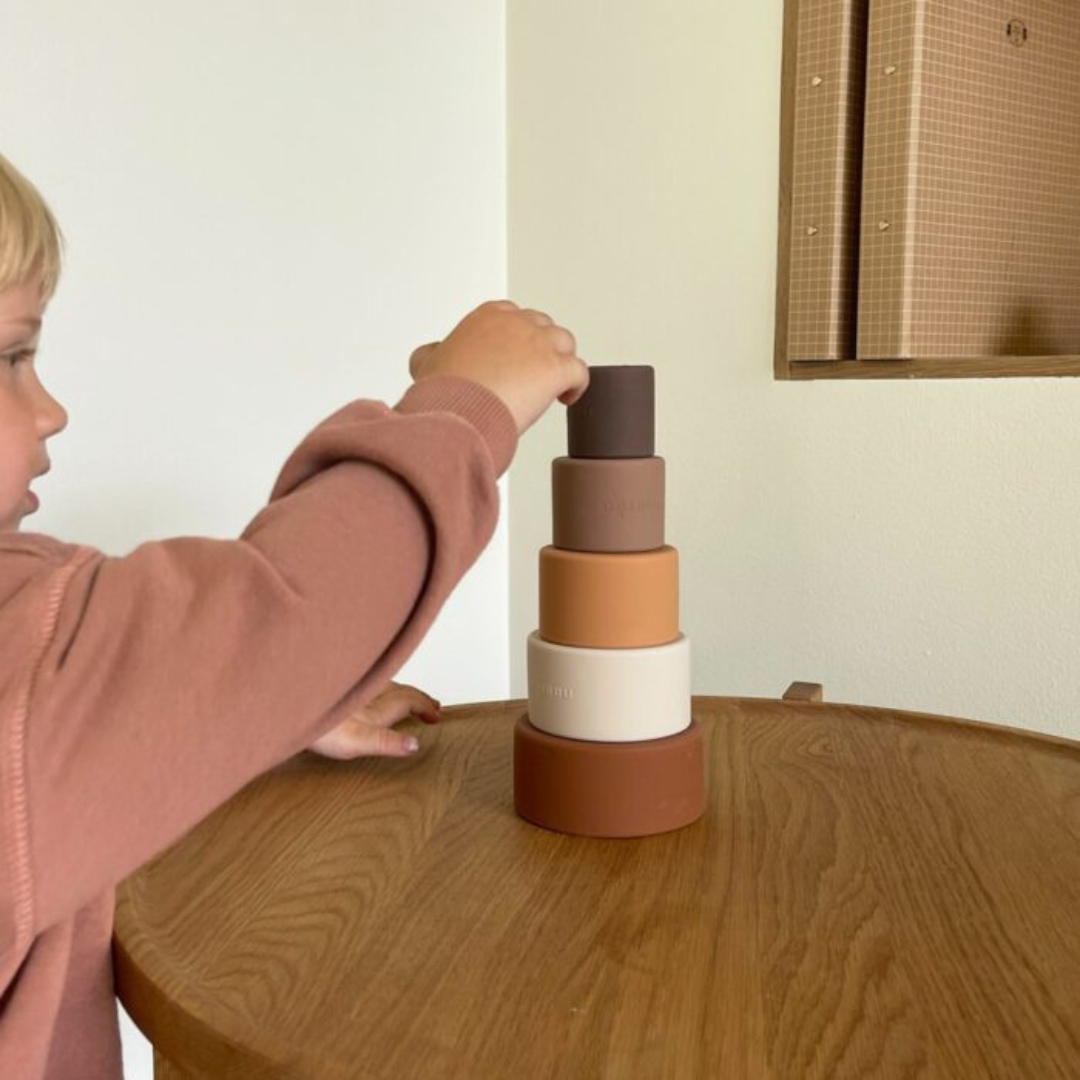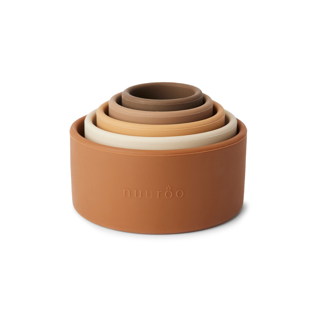 La Torre Apilable de Silicona Vanja de Nuuroo es un juguete educativo y decorativo a la vez. Suaves al tacto y seguras para los más pequeños, las piezas están hechas de silicona certificada FDA, libre de sustancias nocivas y perfectas para pequeñas manos curiosas.