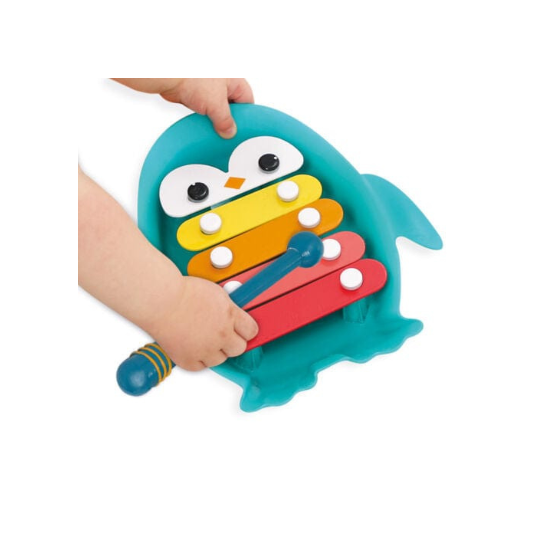 ¡El primer xilófono del bebé, perfecto para jugar en cualquier lugar, incluso en la bañera! Este simpático pingüino musical invita a los más pequeños a explorar sonidos, estimular su audición y desarrollar la coordinación, todo mientras se divierten.