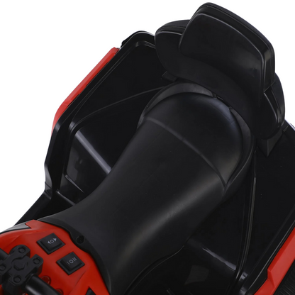 ¡Aventuras sobre ruedas con la 4Trimoto Quad Roja! Esta cuatrimoto está diseñada para brindar diversión y seguridad a niños/as conductores, equipada con un carro de arrastre y características de alto rendimiento que la hacen ideal para juegos al aire libre.