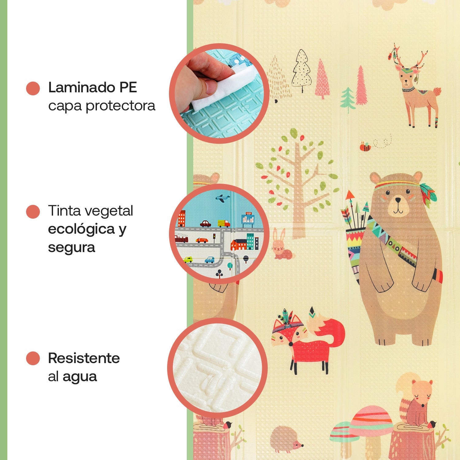 Alfombra Antigolpes Infantil Plegable con Bolso - 180x200 - Oso y Ciudad