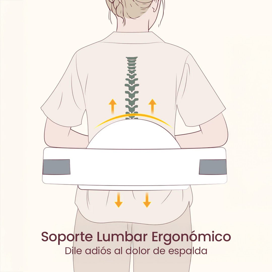 1 almohada de soporte ergonómico + funda lavable + cinturón integrado.