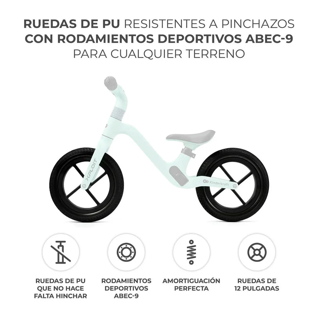 La bicicleta de equilibrio XPLOIT está diseñada para acompañar a los más pequeños en todo tipo de aventuras, adaptándose a cualquier terreno. Con sus ruedas impinchables de PU, no tendrás que preocuparte por inflarlas. Es ideal para recorrer aceras irregulares, asfalto o incluso caminos de grava, ofreciendo diversión mientras el niño desarrolla su equilibrio y coordinación. La XPLOIT es la introducción perfecta para que tu hijo aprenda a manejar una bicicleta con pedales en el futuro, además de fomentar su autonomía y confianza sobre dos ruedas.