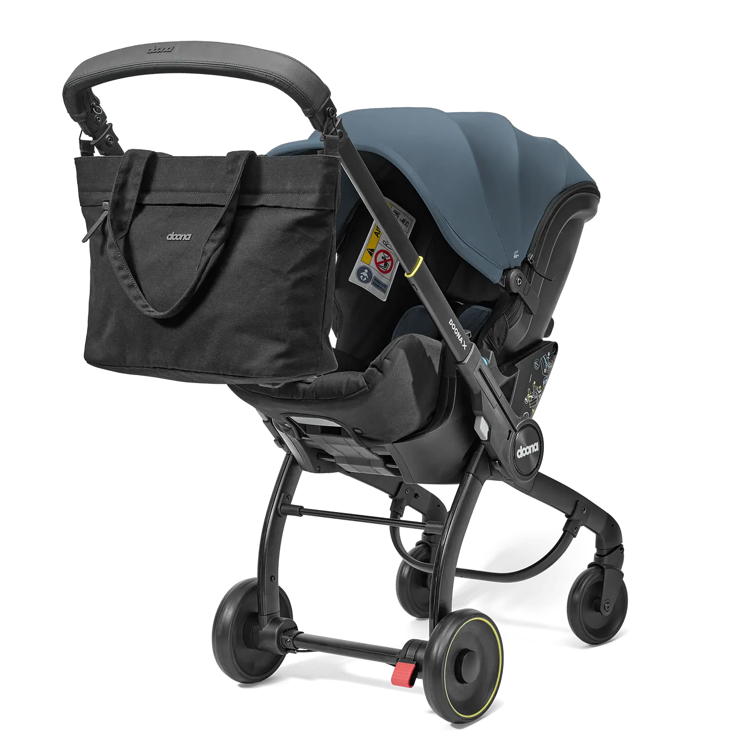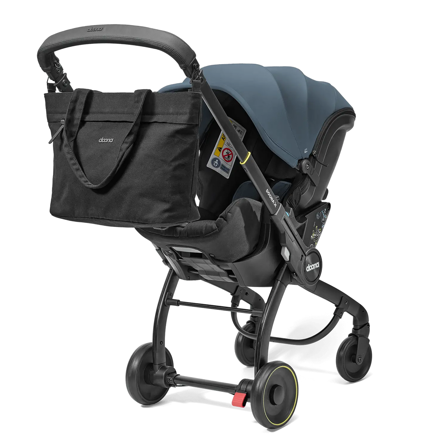 Con múltiples compartimentos inteligentes, incluye un bolsillo exterior con cierre, un bolsillo térmico para mamaderas, un práctico mudador plegable y un pouch interior desmontable para organización extra. Se fija fácilmente al coche Doona+ gracias a sus conectores especiales, permitiéndote tener las manos libres en todo momento.