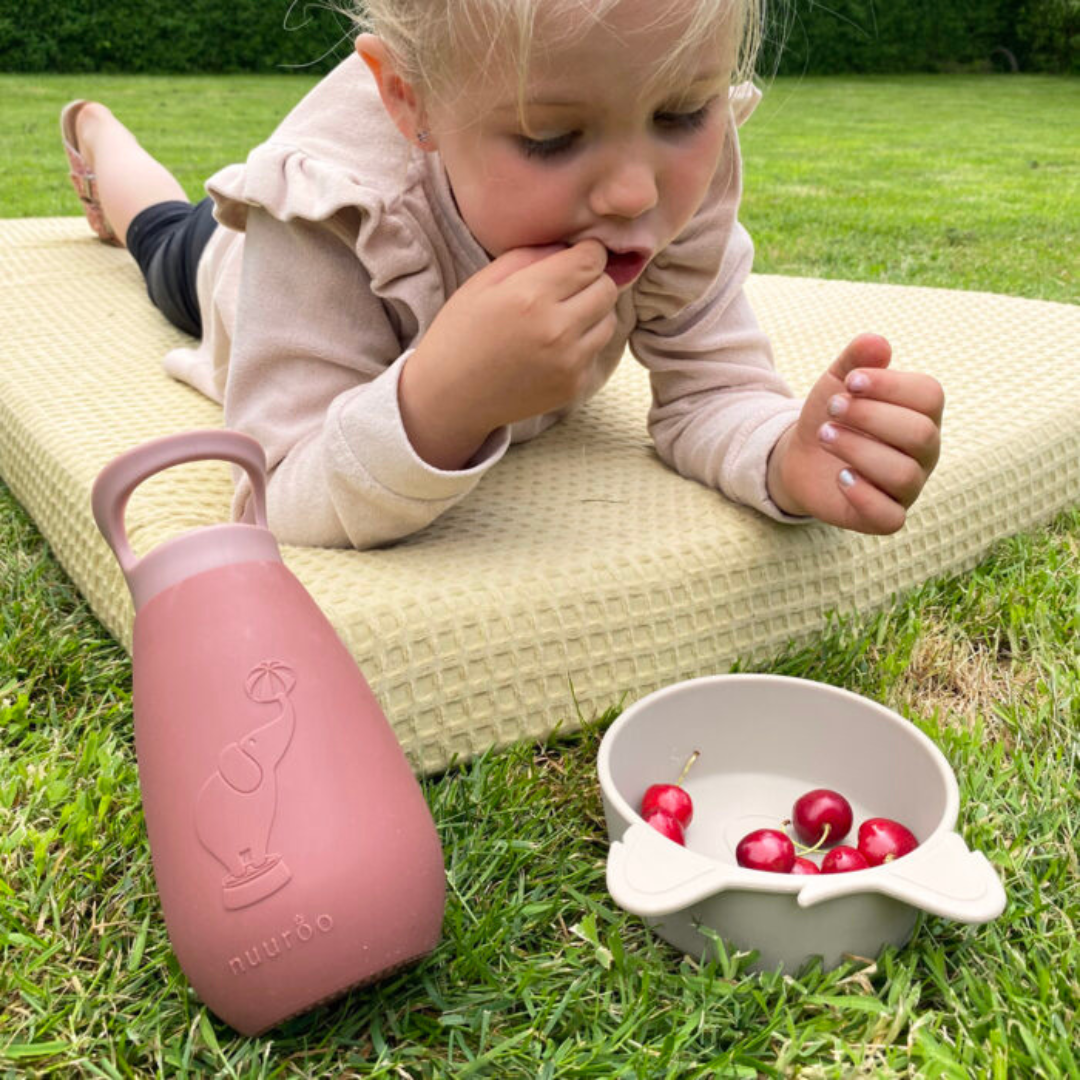 La Botella de Silicona Pax de Nuuroo combina diseño funcional y seguro para acompañar a los más pequeños en su día a día. Fabricada en silicona 100% apta para alimentos (certificación LFGB), es completamente libre de químicos dañinos y resistente al uso diario.