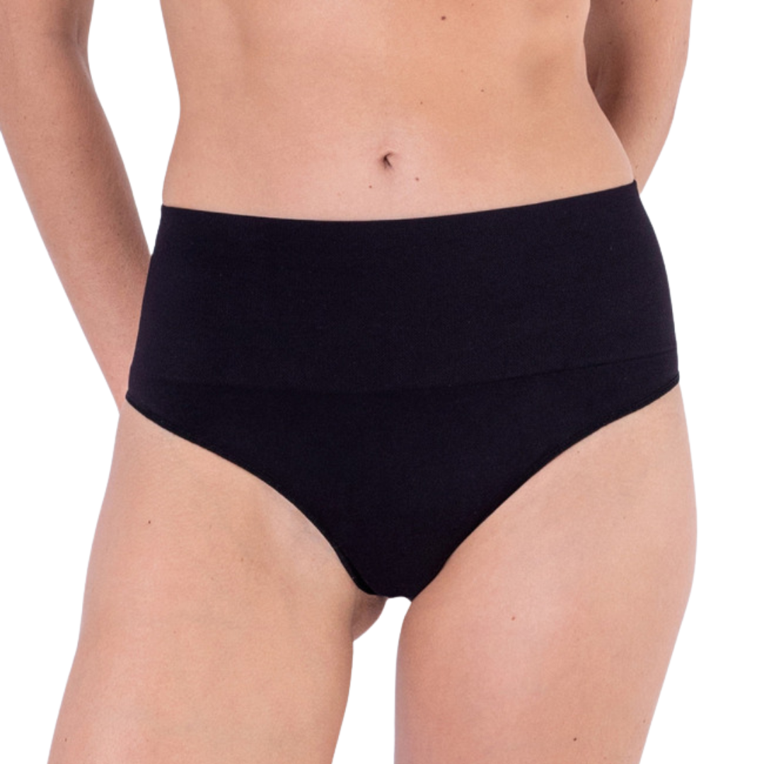 Calzón Post Parto Cintura Alta con Refuerzo en el Abdomen sin Costura - Negro