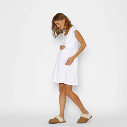 Camisa de Dormir y de Lactancia con Peto y Encaje - Blanca