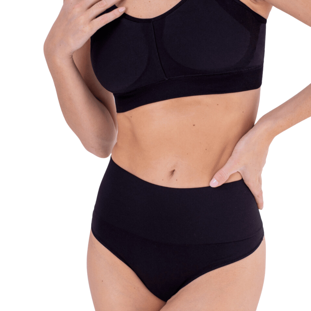 Colaless Post Parto Cintura Alta con Refuerzo en el Abdomen sin Costura - Negro