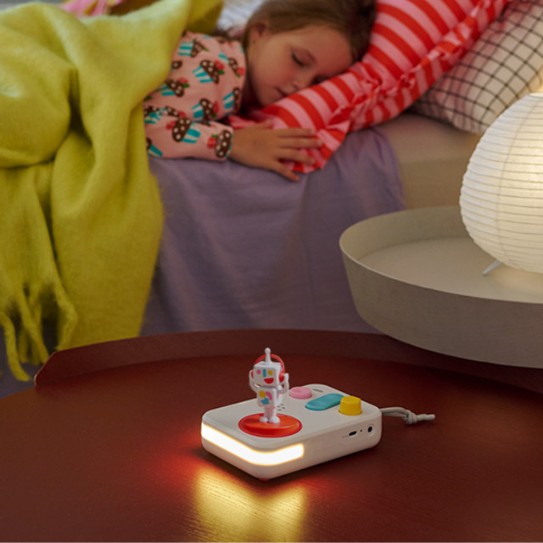 El Cuentacuentos Starter Set PLUS de FABA+ es un dispositivo interactivo sin pantallas que acompaña a niños y niñas desde la primera infancia con historias, canciones y contenidos sonoros que estimulan la imaginación. Su diseño robusto, botones grandes y luz nocturna integrada lo convierten en un compañero ideal para el día y la hora de dormir, fomentando la autonomía y el gusto por la escucha activa.