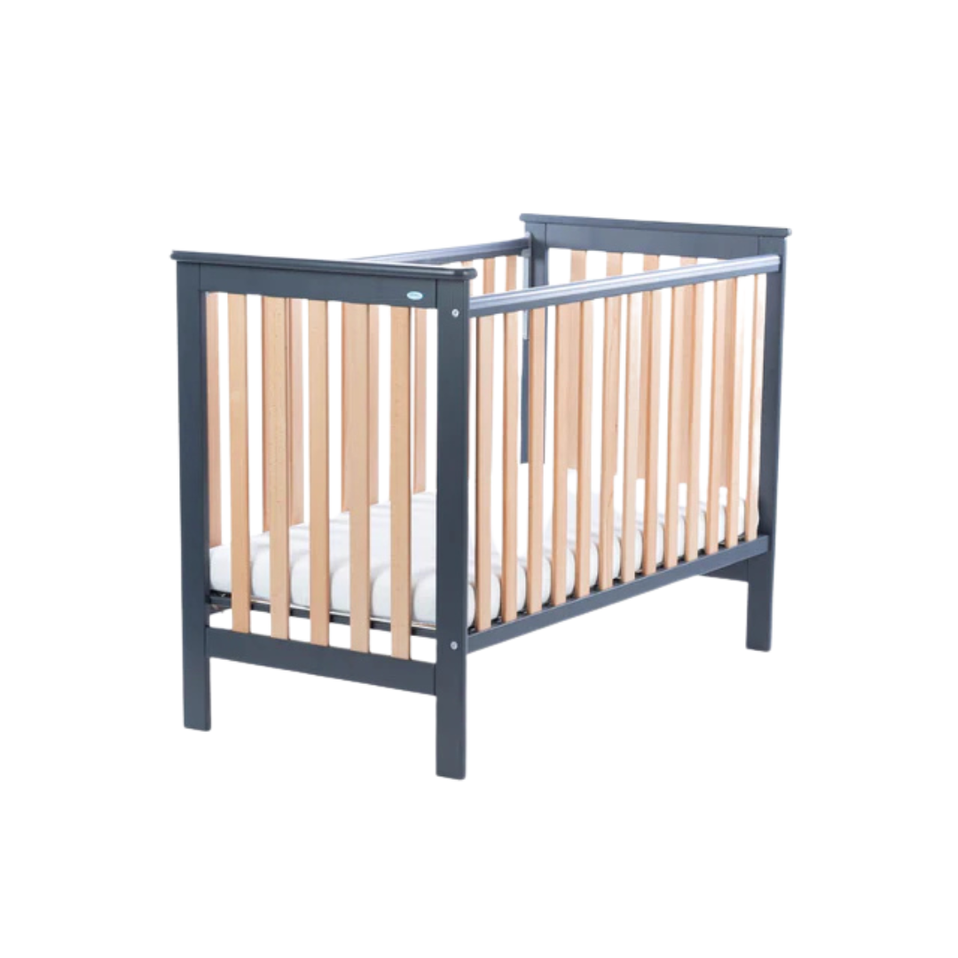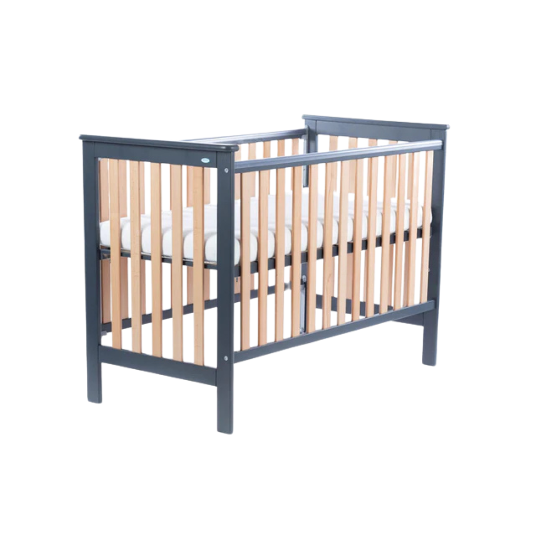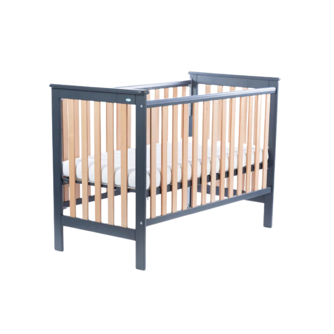 - Diseño Seguro y Resistente: Fabricada con madera de haya de alta calidad, con acabados en color madera y gris, y barnices ecológicos a base de agua, para la protección del bebé.