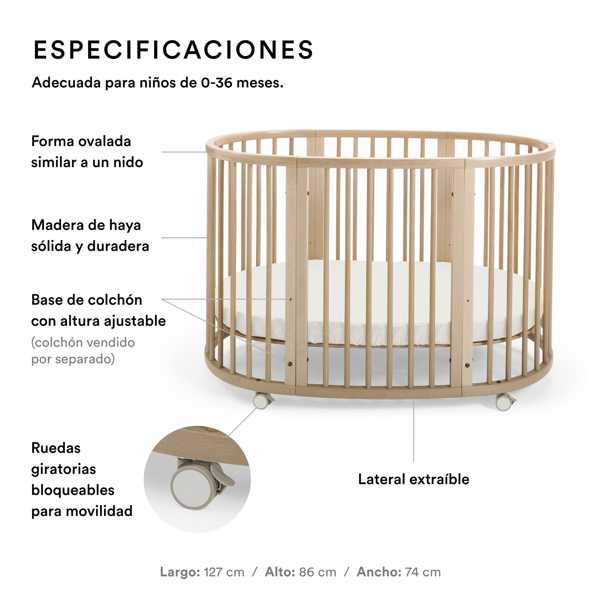 - Laterales desmontables para un acceso cómodo cuando el niño crece