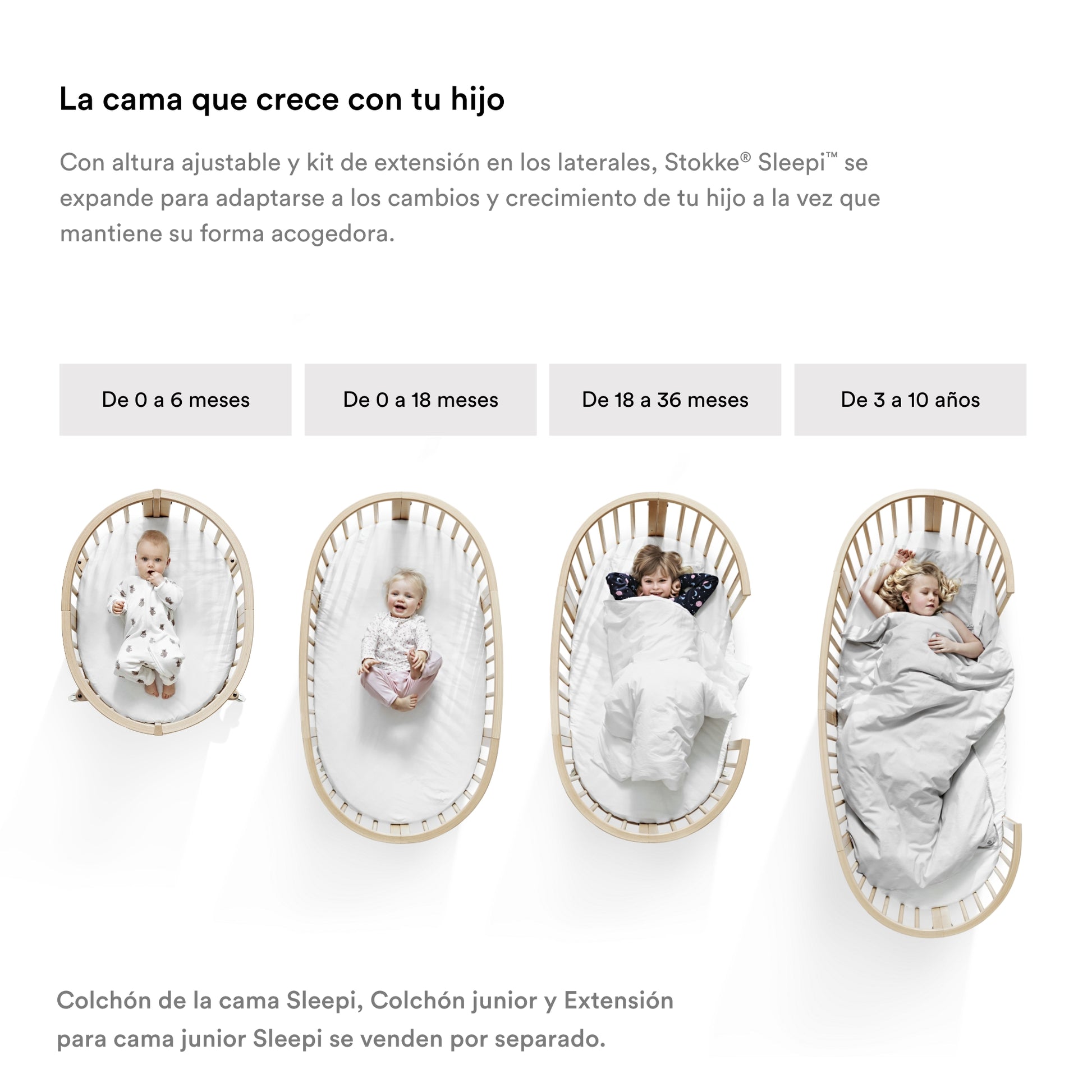La Stokke® Sleepi™ se adapta progresivamente a las necesidades de tu hijo, ampliando su tamaño sin perder la familiaridad del espacio de descanso. Esta continuidad ayuda a que el niño se sienta seguro y cómodo en cada etapa.